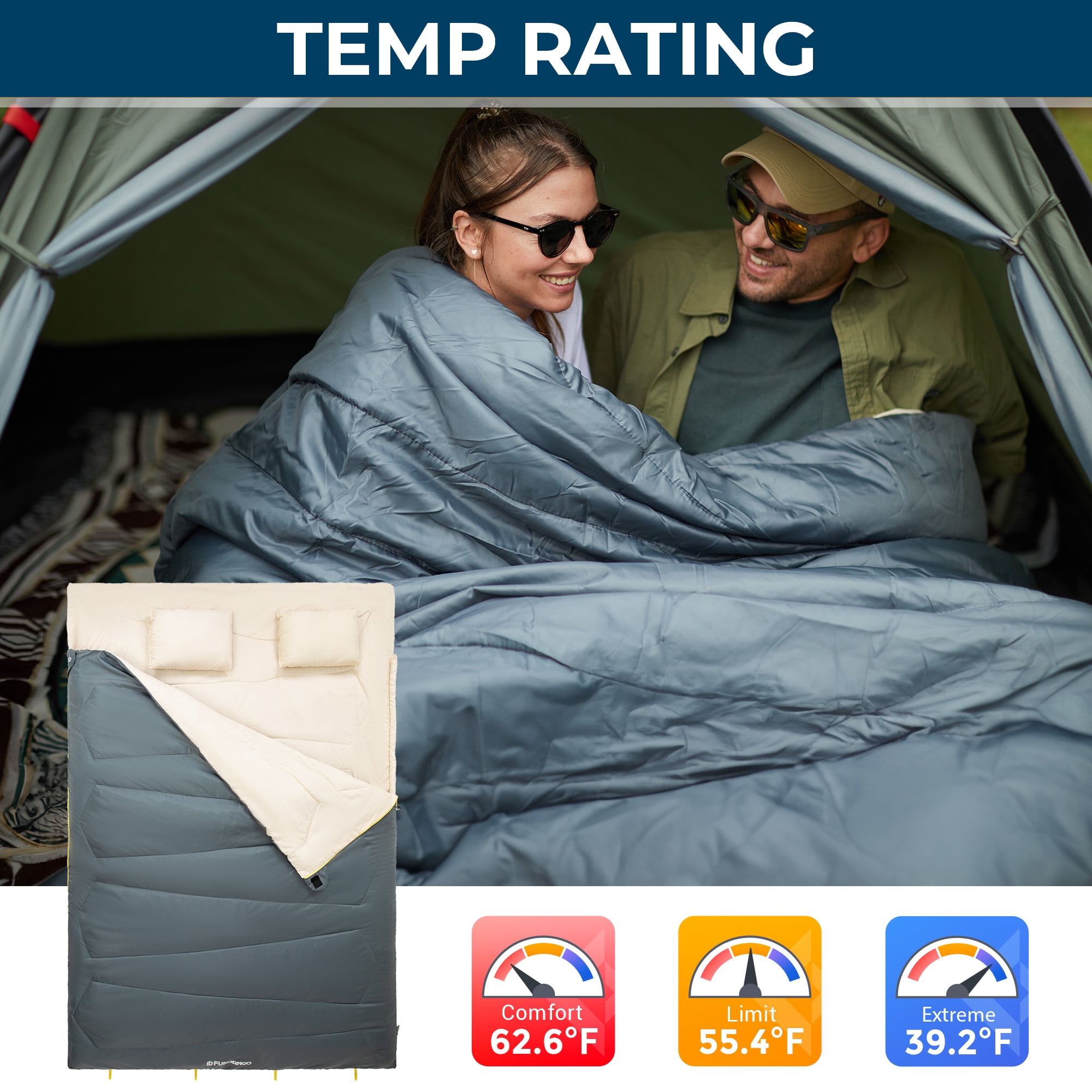 FUNDANGO 3-in-1 Double Sleeping Bag 2 Person Oversized Lightweight Sleep Bag with Pillows for Adult