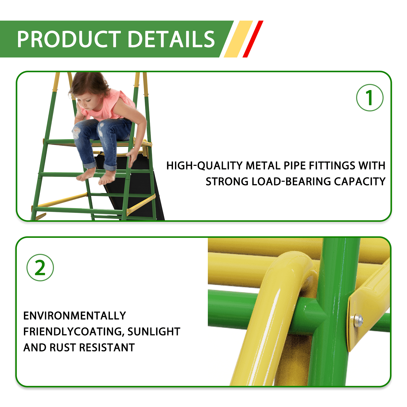 $223.51Original price was: $223.51.$85.13Current price is: $85.13.G TALECO GEAR Multi-Purpose Toddler Swing Set ——The perfect addition to your backyard. Designed with utmost safety in mind, this swing set features a sturdy and durable powder-coated finish and A-frame design to ensure stability and durability. This swing set includes a triangular climbing ladder that enhances balance and coordination, fosters teamwork and self-discovery, and promotes creativity and physical development. Size: 51″D x 46″W x 55″H Weight: 27 lbs Frame Material: Metal Slide Material: Oxford Cloth Color: Green
