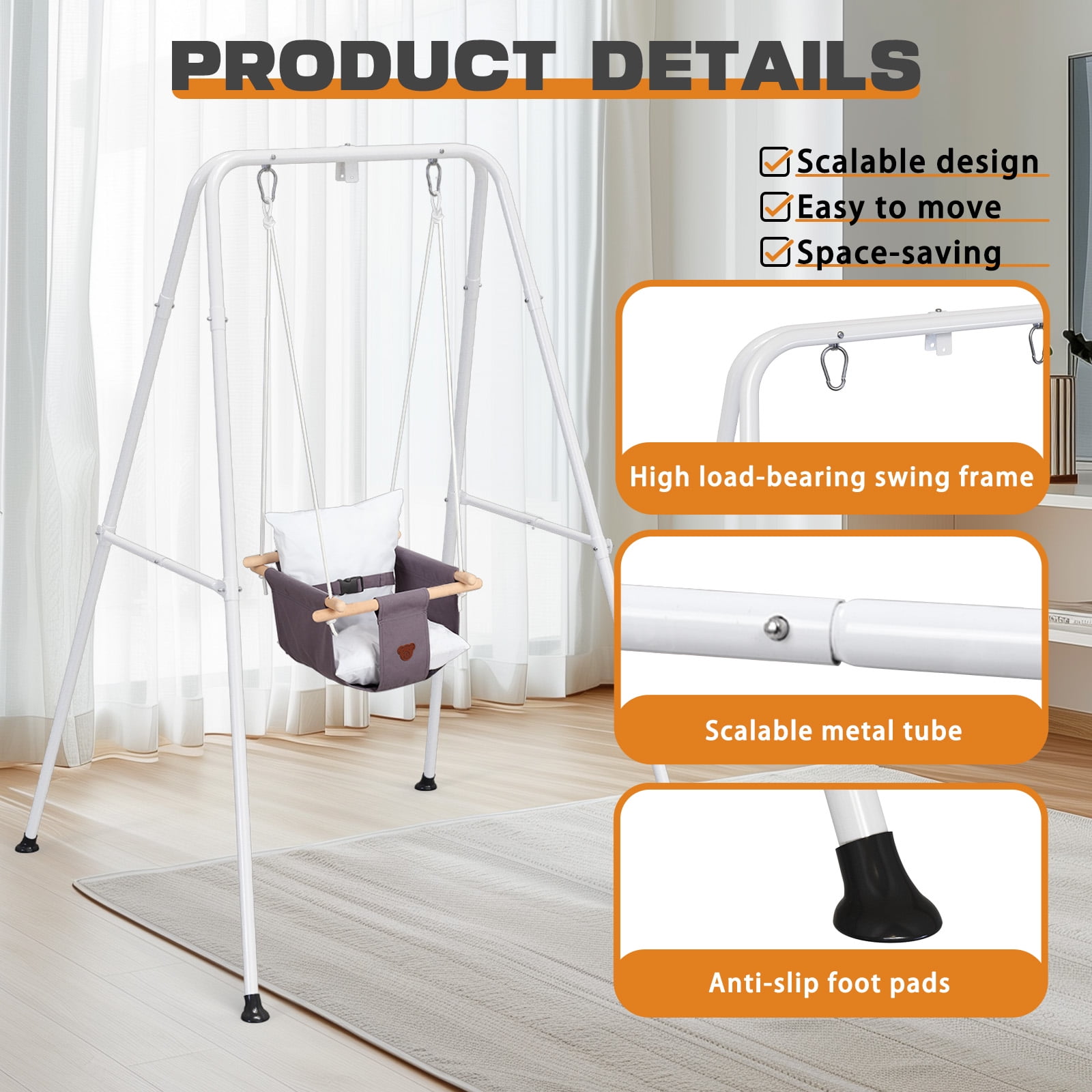 G TALECO GEAR Toddler Swing Set with Canvas Cushion Seat, Baby Swing Outdoor Playset, Age 6-24 months, Gray