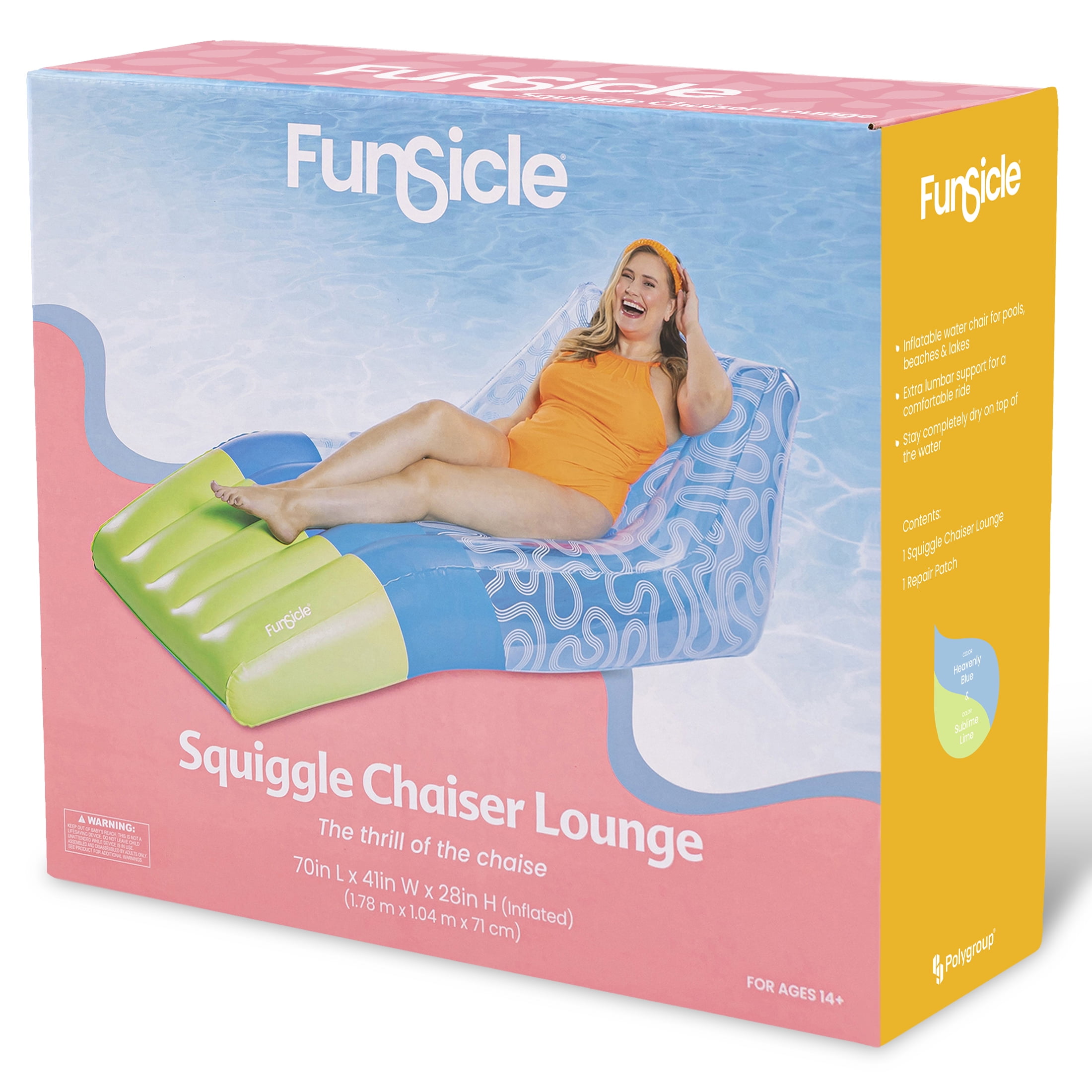 $60.17Original price was: $60.17.$49.00Current price is: $49.00.The Funsicle Squiggle Chaiser Lounge is the go-to inflatable pool float for anybody wanting to relax on the water. You can stretch back and chill, while staying completely dry. Available in a bright unisex color and trendy pattern design, you stand out on the water. This inflatable water chair provides extra back support for all types of bodies for a comfy ride. Easy-to-inflate, all adults looking for the most relaxing swimming pool float will love the Funsicle Squiggle Chaiser Lounge.