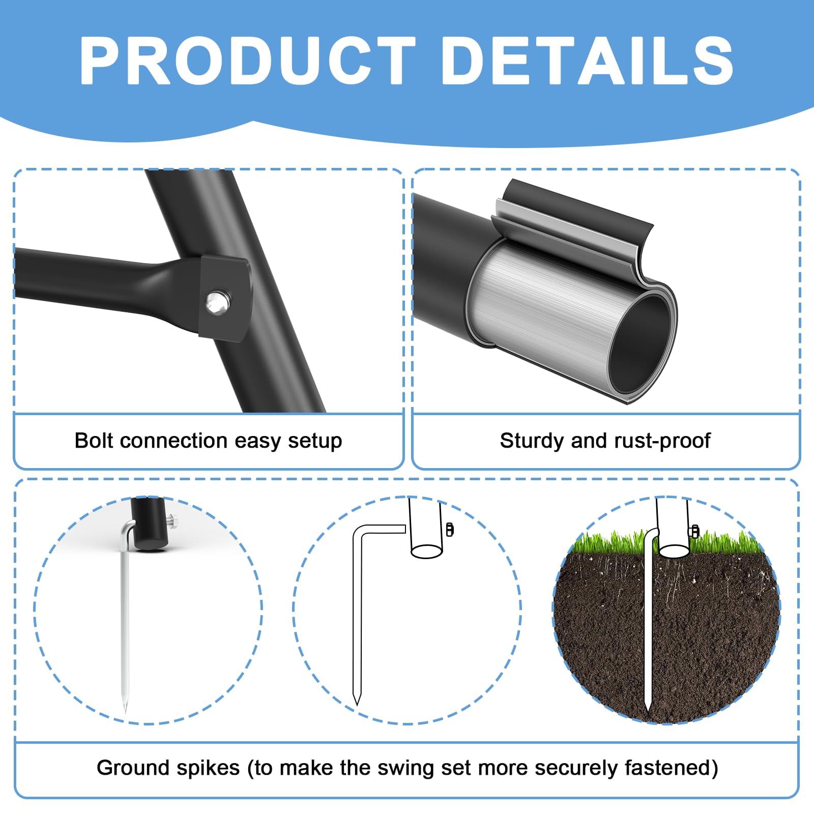 G TALECO GEAR Foldable Swing Stand for Kids, Toddler Swing Sets for Backyard, Outdoor Metal Swing Frame for Baby Swings, Black