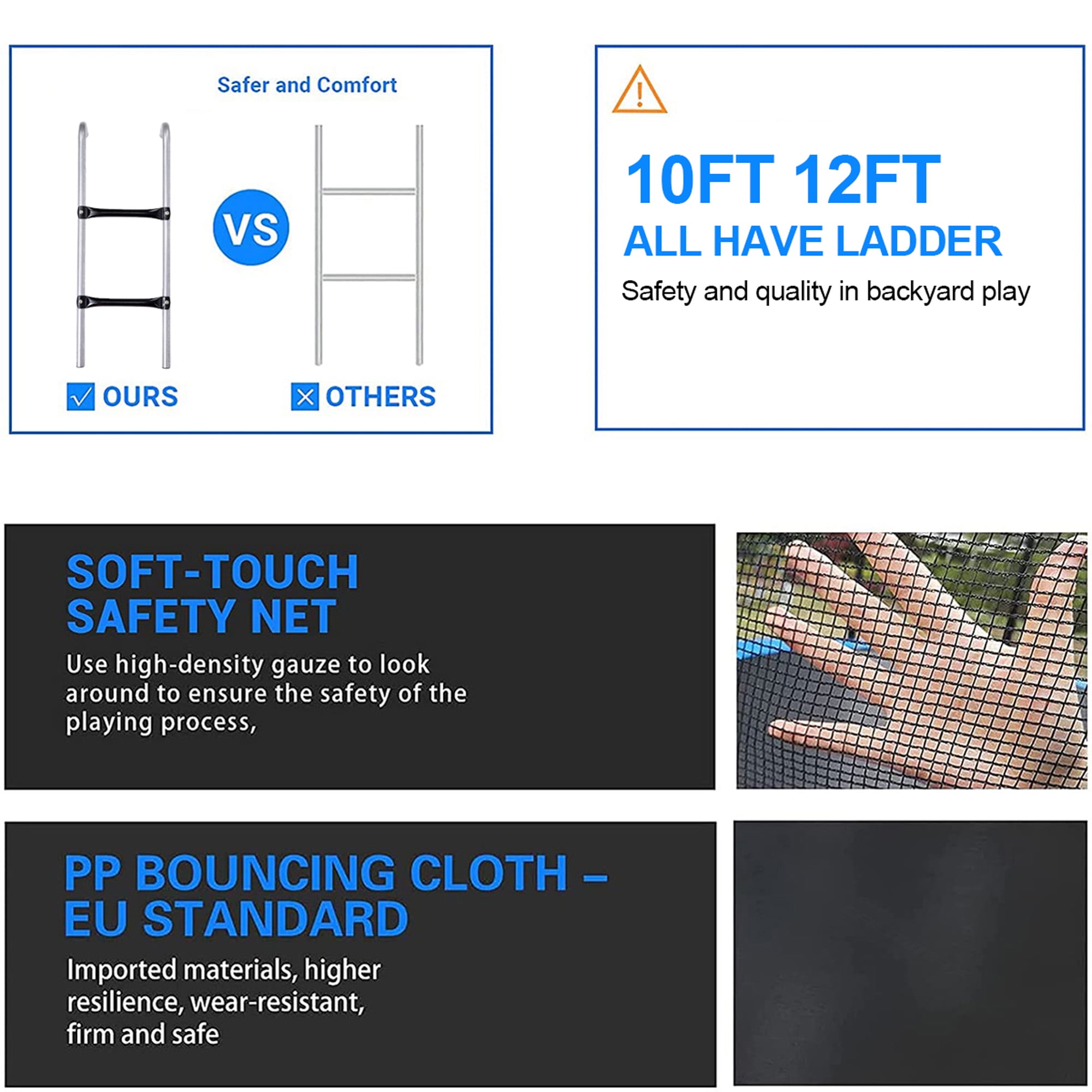 FUNTOK 10FT Trampoline for Kids and Adults, Recreational Trampoline with Enclosure Net, 600LBS Capacity Outdoor Backyard Trampoline w/ Ladder for 3-4 Kids