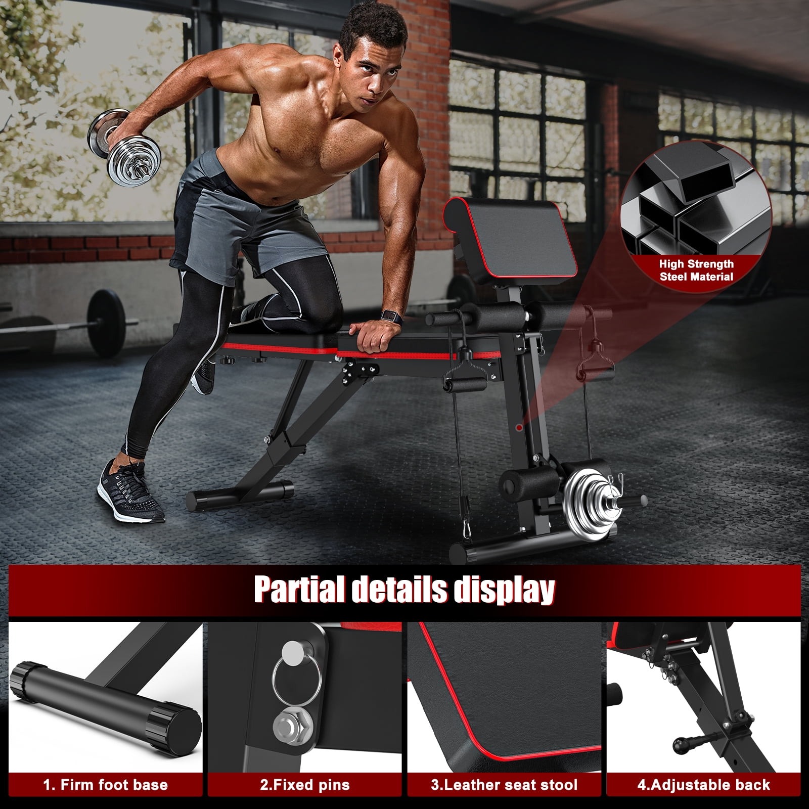 GLFERA Adjustable Weight Bench,660LBS Workout Bench for Home Gym with Preacher Curl and Leg Press Attachment Fitness