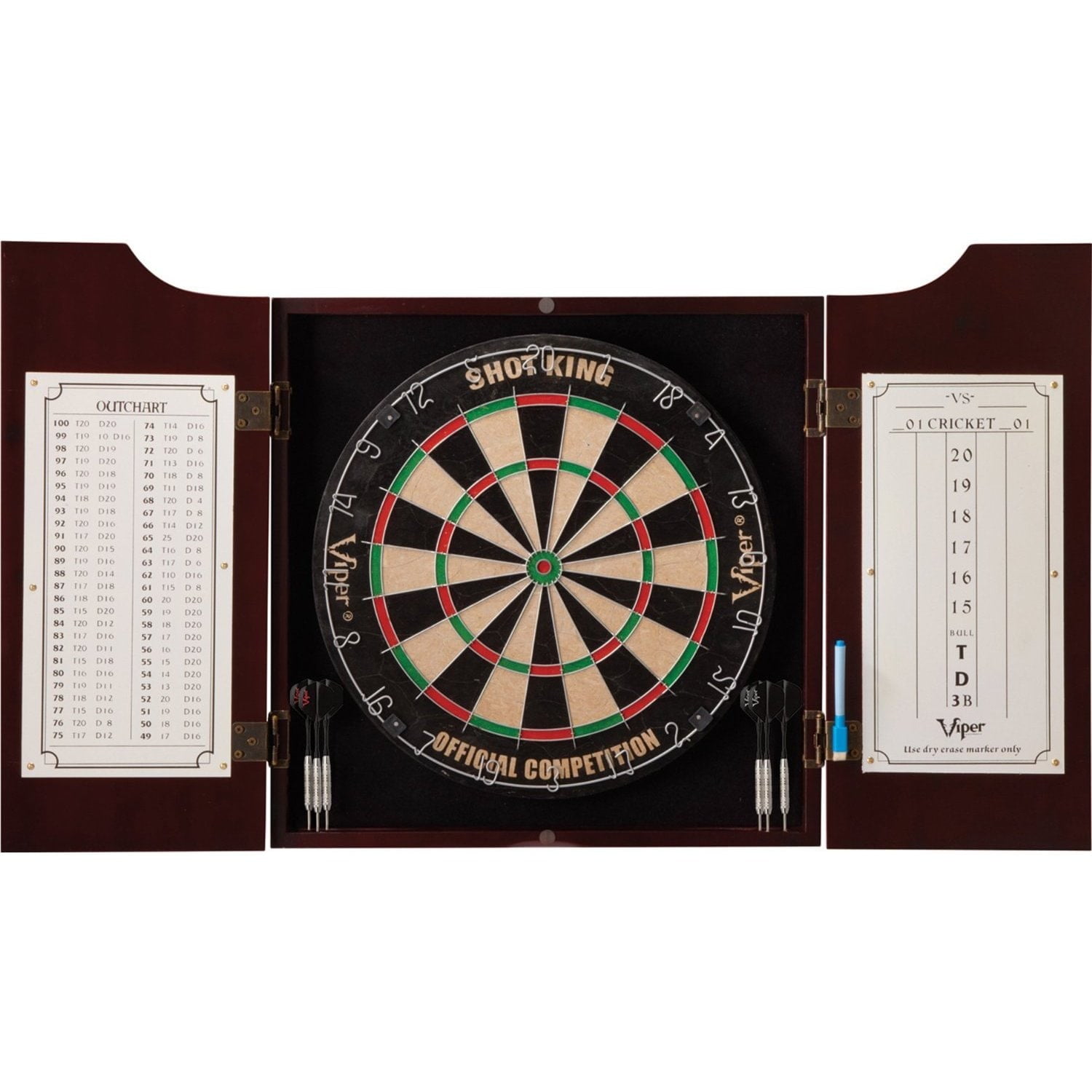 $126.41**GLD Viper Hudson All-In-One Dart Center** The Viper Hudson All-In-One Dart Center adds a classic elegance to the game of darts. Featuring a solid pine exterior with a mahogany finish, brushed nickel hinges, and a dry-erase cricket score board, the Viper Hudson All-In-One Dart Center will add fun and beauty to your game room. The tournament style sisal dartboard material and steep-tip darts is how the game was meant to be played.