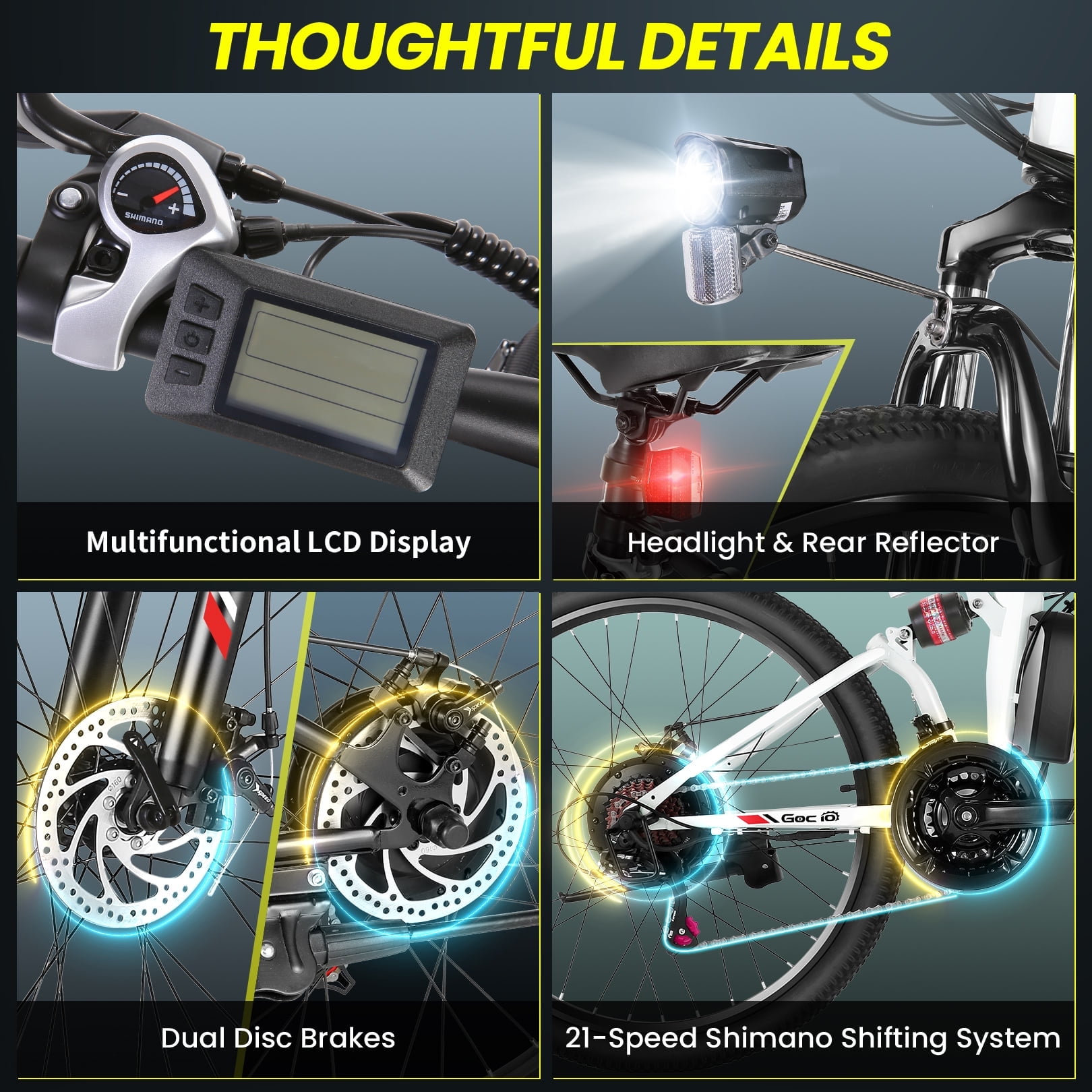 Gocio 26″ Electric Bike, 350W Electric Bike for Adults 19.8MPH Electric Mountain Bike, LCD, Lockable Suspension Fork, 374.4Wh 36V Battery UL2849 Certified, 21-Speed E-Bikes Adult Electric Bicycle