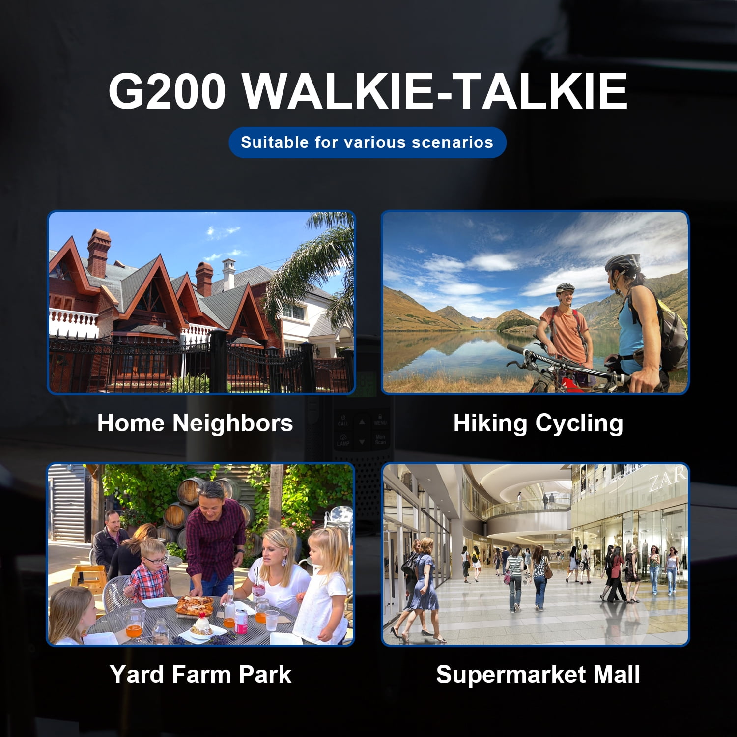 GOCOM G200 Walkie Talkies for Adults 4pk with Two Way Radios, Rechargeable Long Range ,with LED Light,22 FRS Channels,10 Weather Channels