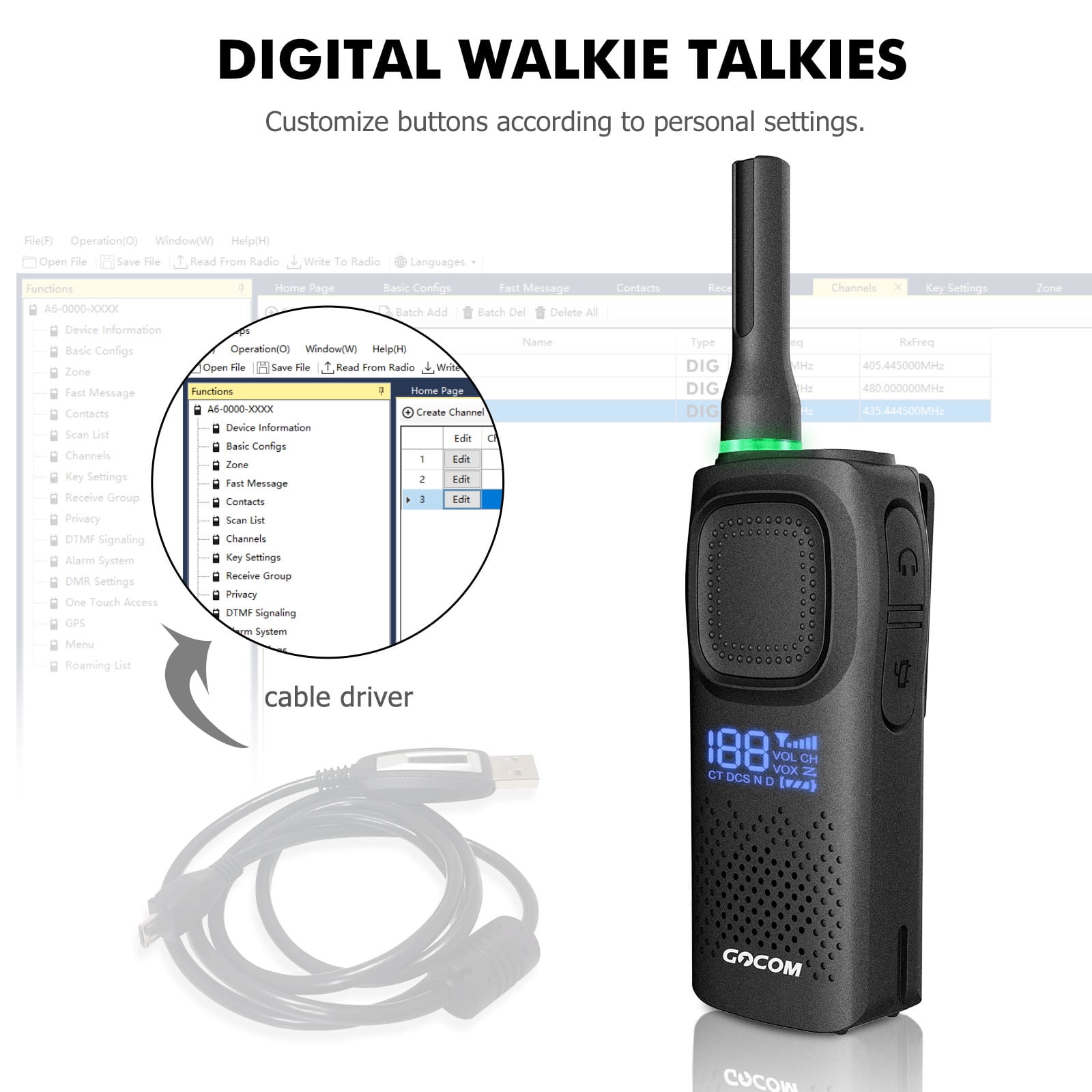 $51.59Original price was: $51.59.$46.43Current price is: $46.43.Two-Way Radios GD800# DA mode(Digital or Analog)- Switchable between digital or analog voice signal channels. Commercial walkie talkies Better noise interruption resistance- No worry for clear communication even in a noisy environment. Digital radio has better radio signal noise resistance due to its technology. Digital walkie talkies‘’Call Request‘’ feature- Digital radio allows you to accept or decline a call. Business Radio More channel selection- Digital radio technology offer more channel selection with enhanced privacy codes. is extremely compact and slim for business use; featured with 32 channels and rich features; ‘Call You’ feature- Digital radio can perform a PTT call to a dedicated friend instead of analog group call. Crystal Clear Voice- Digital radio offers crystal clear voice with almost no background noise. The effect has significant difference at the fringe of the communication range compare to analog radio.