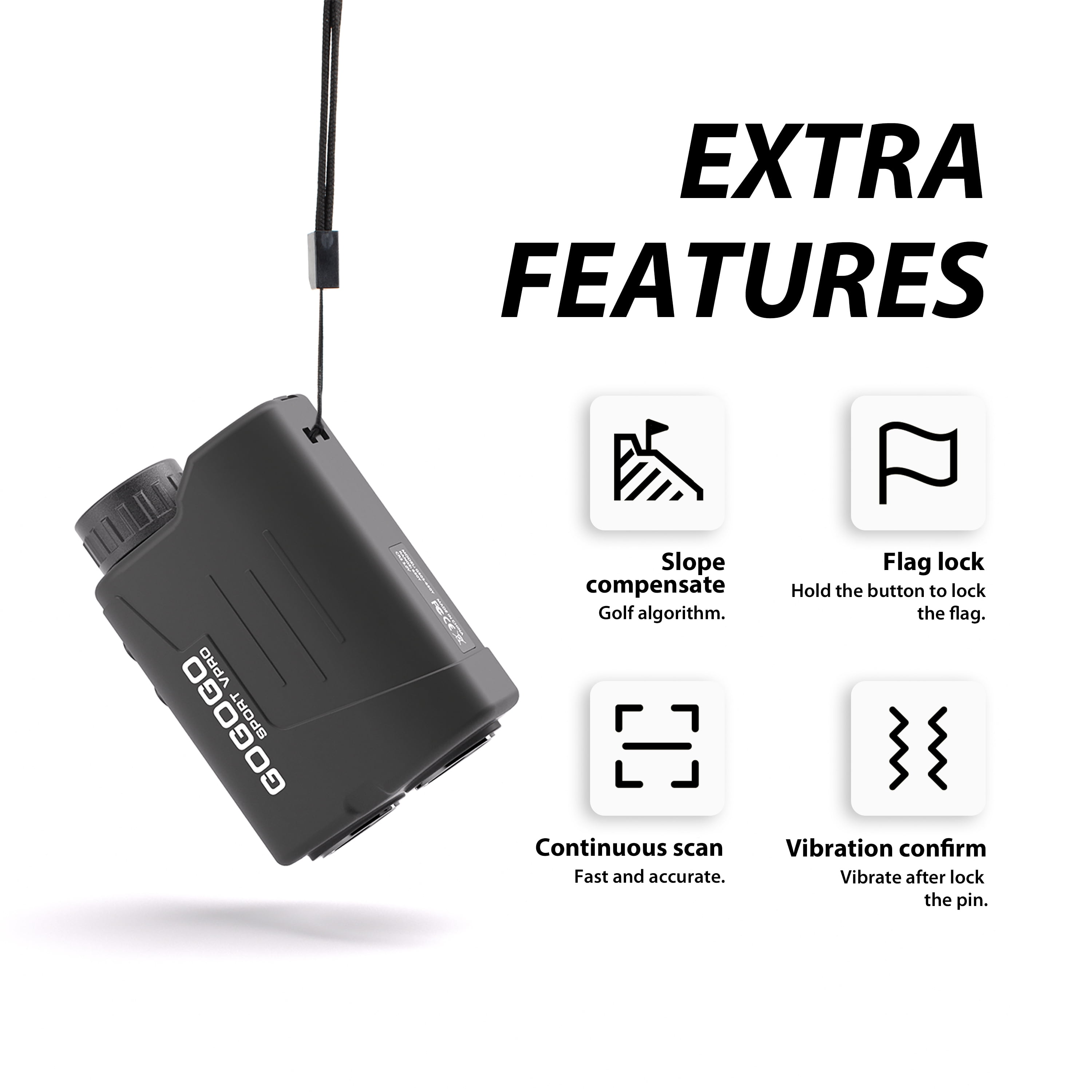 $85.99Gogogo Sport Vpro GS24/GS24MTL 650/1200 Yards 6X Magnification Laser Rangefinder for Golf and Hunting Model: GS24, GS24MTL(with built-in magnet and slope switch), GS24 black(with horizontal distance) Maximum measuring distance: 650yds/594m, 1200yds/1097m Maximum Flag locking distance: 150 yards (flagpole); 250 yards (unfolded flag) Units: yard, meter Accuracy: ±1 yard Magnification: 6x, the focus can be adjusted by rotating the eyepiece to make view clear Automatic shut-off: 8s Vibration: yes Slope compensation: yes, GS24MTL can turn off the function Scan: yes Low battery reminder: yes Power: 2 AAA batteries(not included) Package Content: laser rangefinder, carrying case, lanyard, operation manual, cleaning cloth Wider Application: the range finders for Gogogo Sport Vpro are suitable for golf, hunting, bow hunting, archery, target shooting and mountaineering. It can also be used as a gift, such as: business, birthday, Father’s day, Mother’s day, coming-of-age ceremony, graduation and Christmas, Valentine’s Day etc.