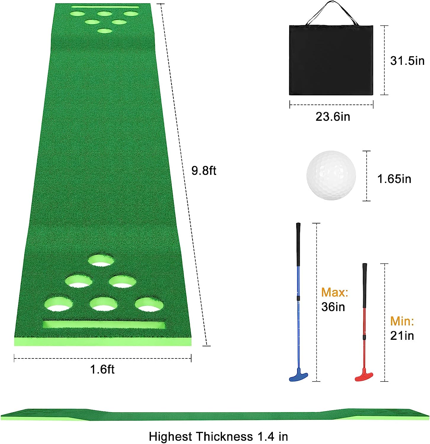 $94.58The Golf pong putting game set is made of excellent quality simulation grass, thick EVA base. No matter you’re at home, in the office, the backyard, or home party, just a few minutes for setting up this golf green putting mat, you can enjoy golf drinking game experience with your friends and family at any occasion.