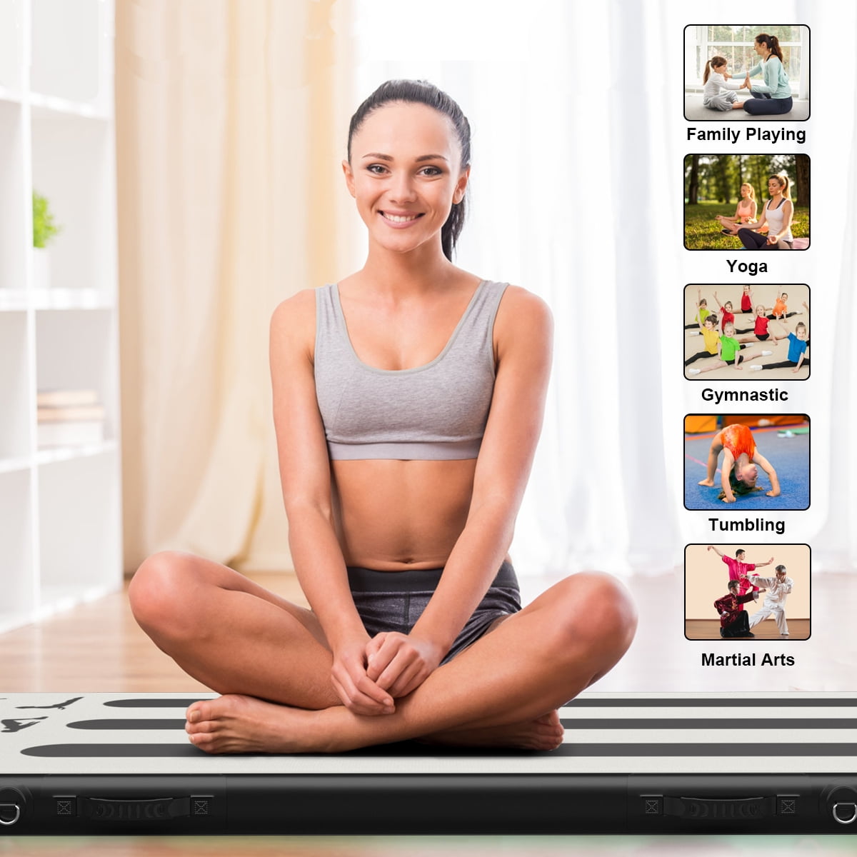 $205.54Original price was: $205.54.$99.75Current price is: $99.75.Do you want to do the various activities in your home or backyard without getting out to the gym paying great fees? Our inflatable gymnastic mat will be the best choice! Thanks to its premium PVC material, it is safe to jump and land on freely. There’s no need to worry about accidental broken of mat as an air pump and a repairing kit are provided for your convenience. As it can be folded easily, it is convenient for you to carry and store easily. This inflatable gymnastic mat is great for gymnastics, tumbling, cheer leading, free running, stunting, martial arts, and water yoga! Feature Two-layer thick PVC material is waterproof, non-slip, durable and not easy to be torn Drop stitch fabric provides high intense and superior elasticity Hook and loop fasteners and D-rings help connect two or more mats together for different needs Waterproof material makes it easy to clean and can be used on the water Good sealing performance to ensure long service time once inflated Powerful electric pump with high pressure to help inflate the mat quickly Fast deflation and compact folding design easy to be stored at the corner to save space Handles and carrying bag convenient for transportation when going out A repairing kit included for more convenience Perfect for gymnastics, tumbling, free running, stunting, martial arts, water yoga,etc Specification Color: Black Material: PVC Length: 10ft Width: 3ft Thickness: 4inch Wire Length: 6ft Net Weight: 22lbs Max Pressure: 2PSI Package includes: 1 x Inflatable Gymnastic Mat 1 x Electric Air Pump 1 x Handle Bag 1 x Repairing Kit 1 x Instructions
