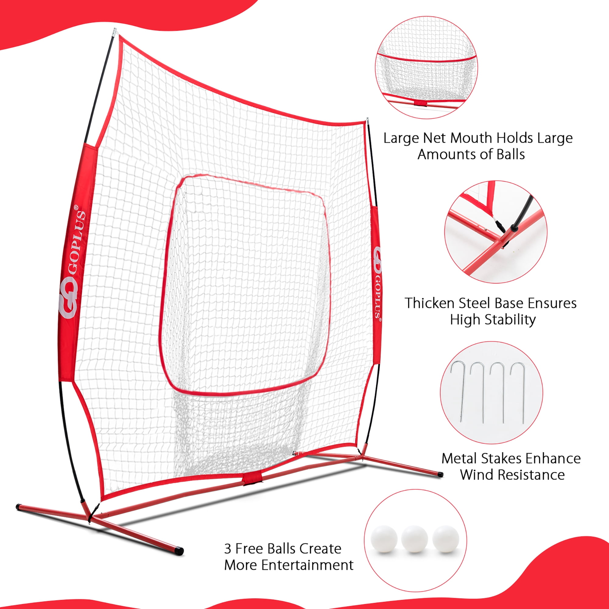 Goplus 8′ x 7′ Baseball Softball Practice Net for Hitting Pitching Batting Red