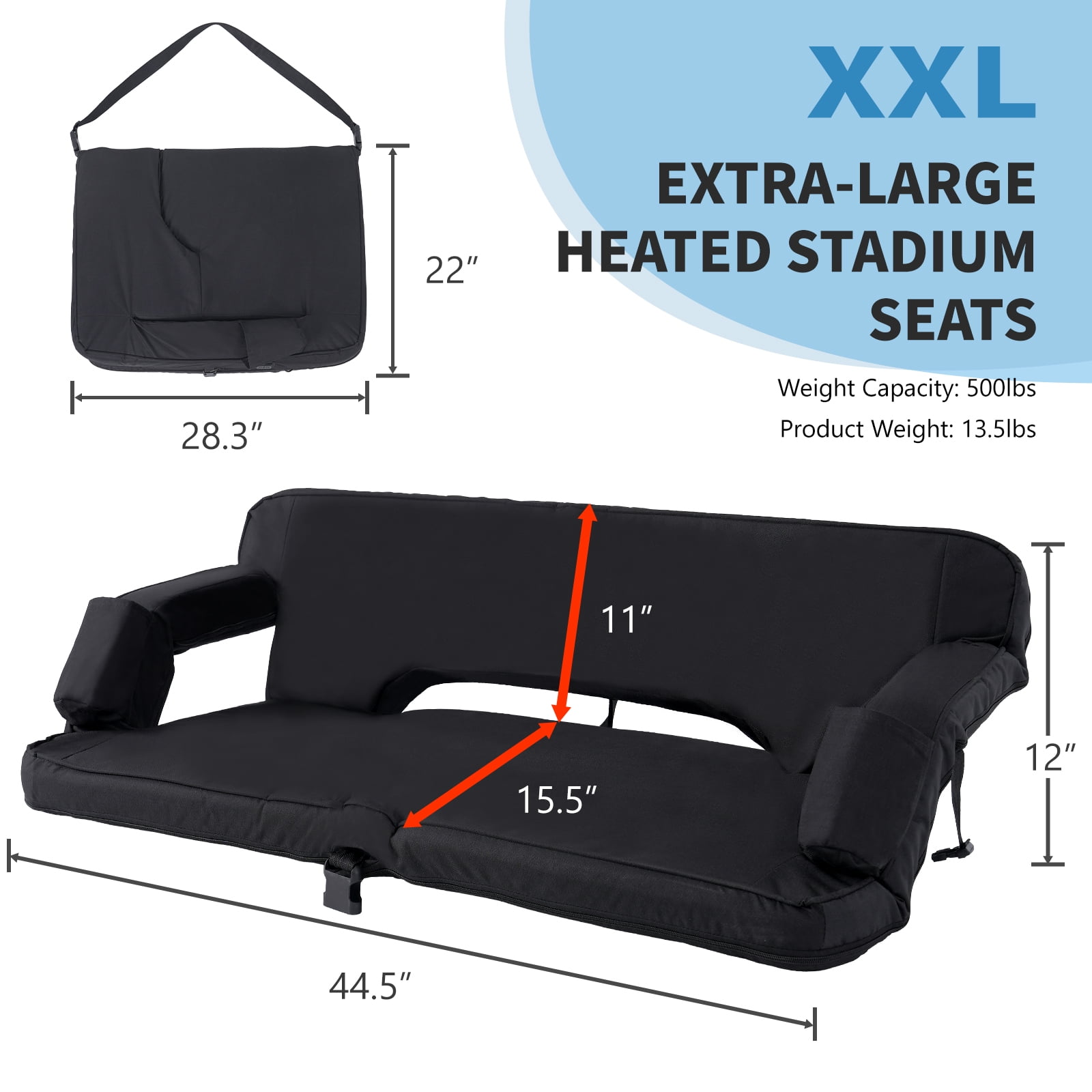ABORON 2 Packs Heated Double Stadium Seats for Bleachers with Back Support Extra Wide Couple Bleacher Seat Portable Padded Stadium Chair, USB 3 Levels of Heat, 6 Reclining Positions