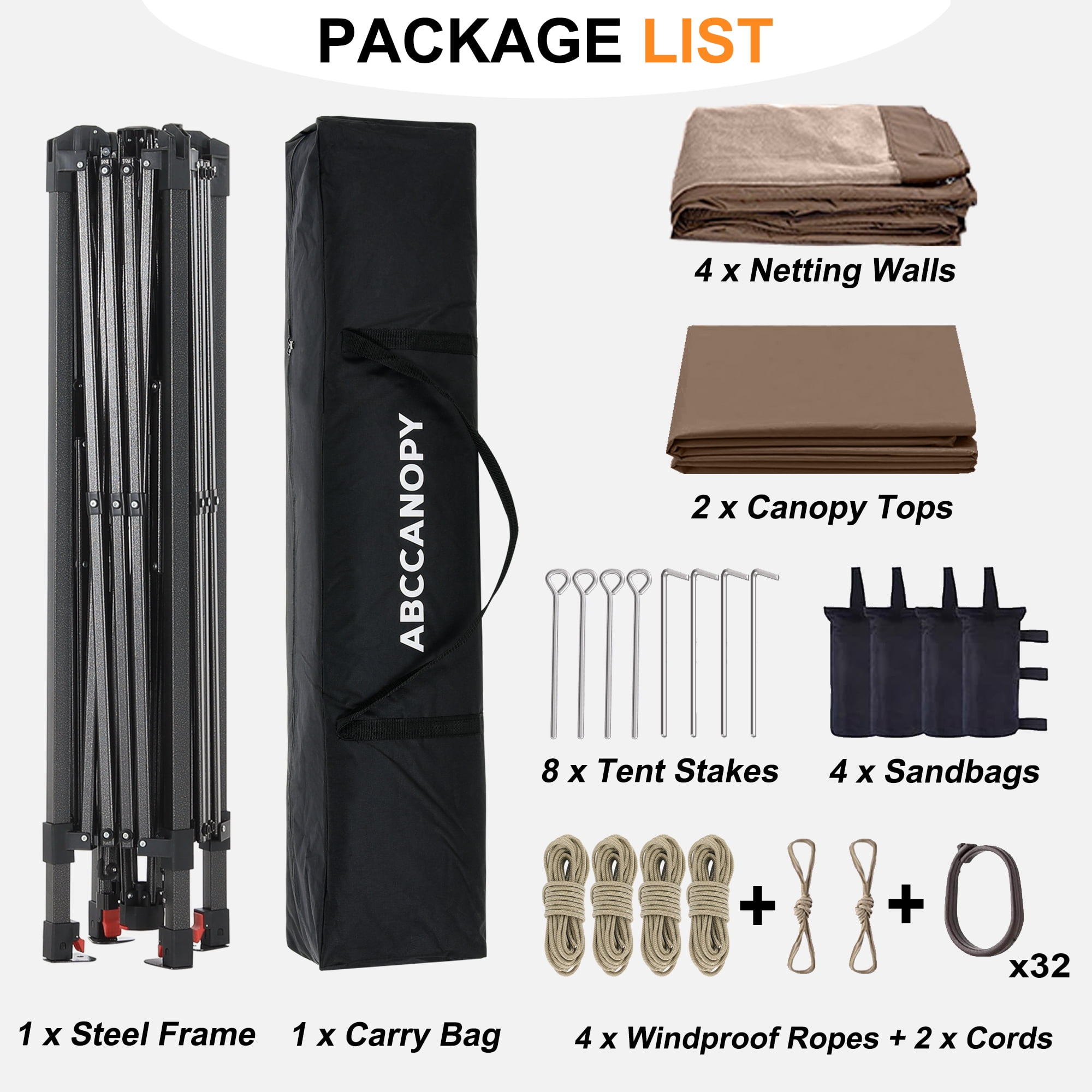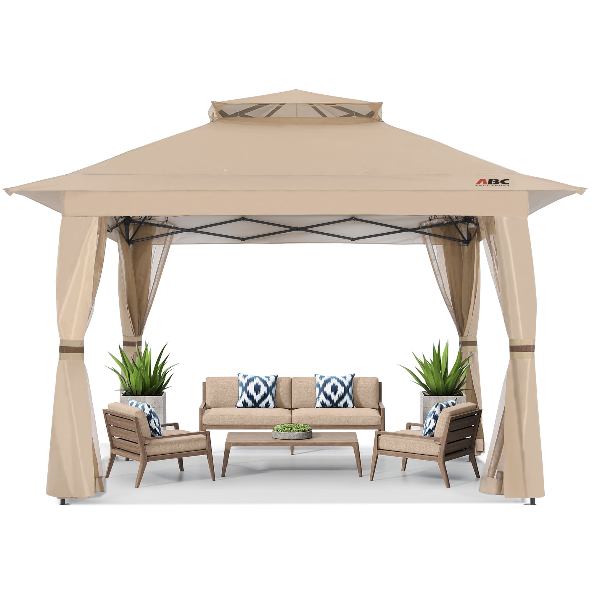 ABCCANOPY 13’x13′ Gazebo Tent Outdoor Pop up Gazebo Canopy Shelter with Mosquito Netting, Brown