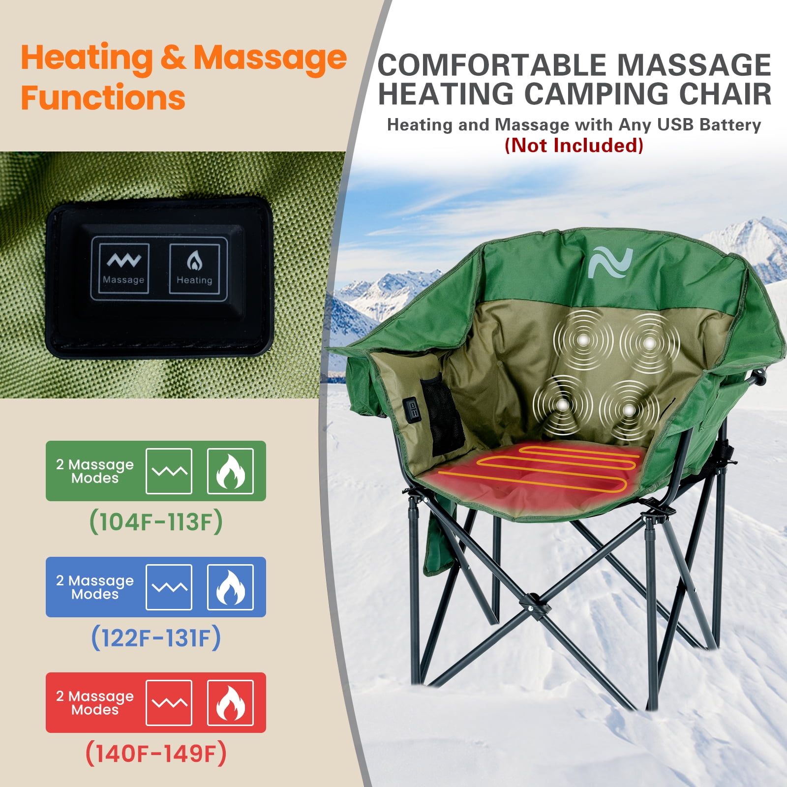 ABORON Padded Heated Massage Camping Chair Adult, Outdoor Folding Chair with 3 Heat Level & Back Massage, Heated Patio Chair Portable Heavy Duty Arm Chair, Support Up to 400lbs, Battery NOT Included