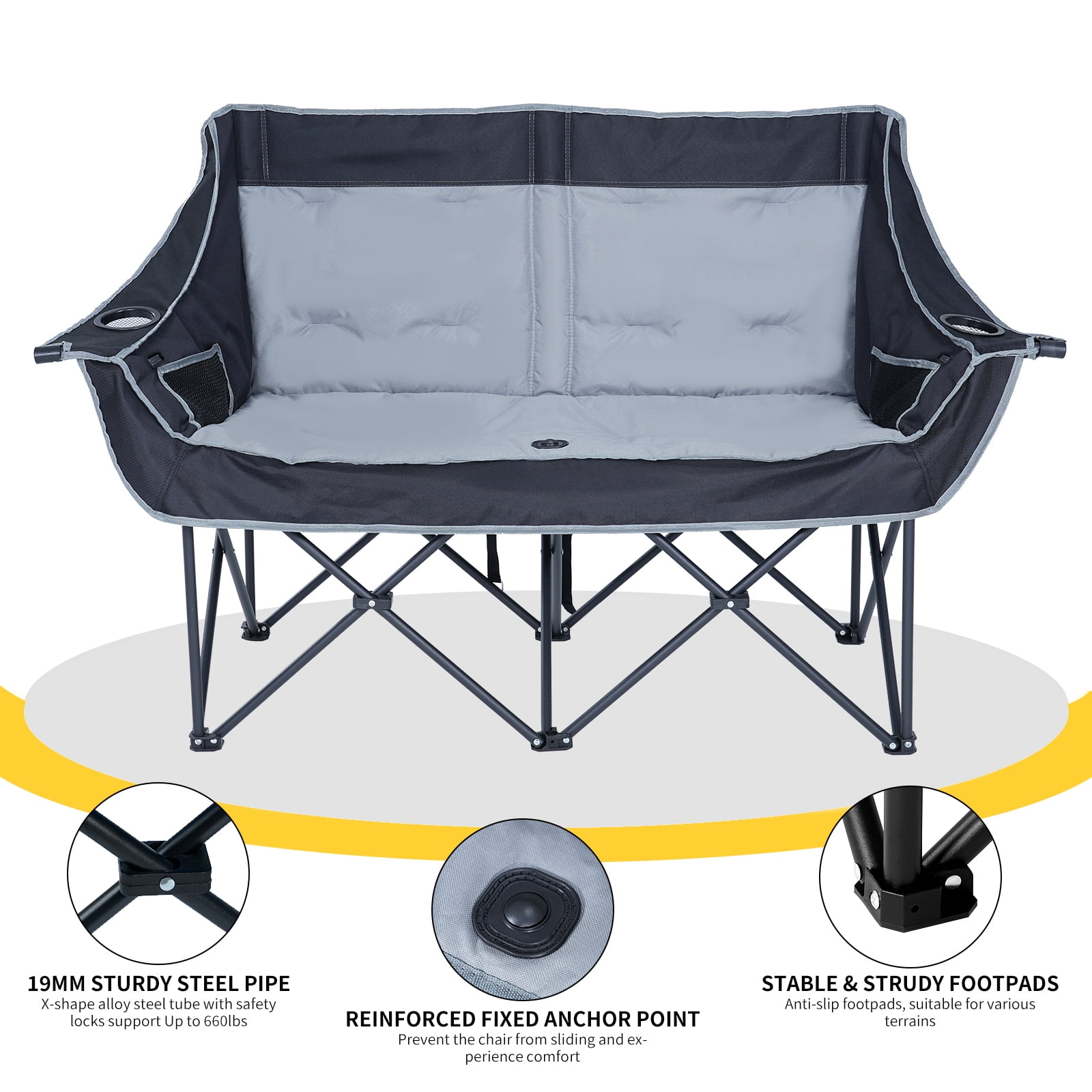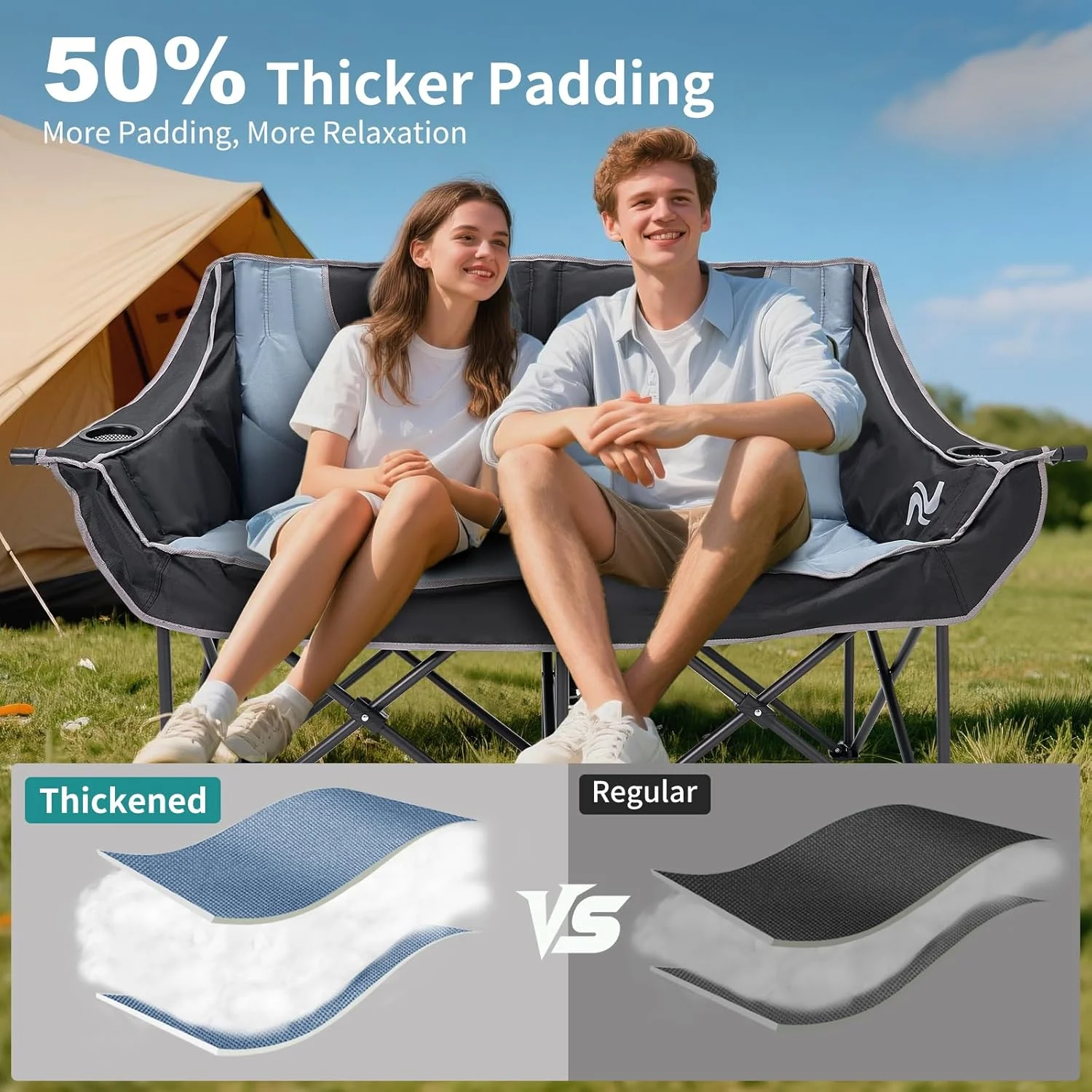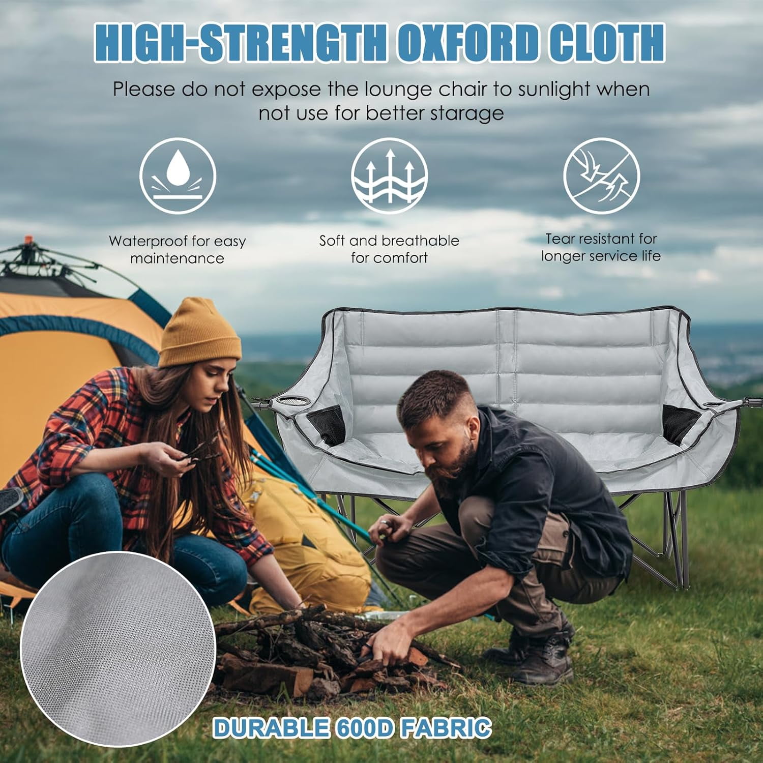 ABORON Oversized Heated Double Camping Chair, Folding 2 Person Camping Chair Loveseat, Fully Padded Duo Chair Camping Couch with 3 Heat Levels, Portable Double Lawn Chairs, Outdoor Camping Bench