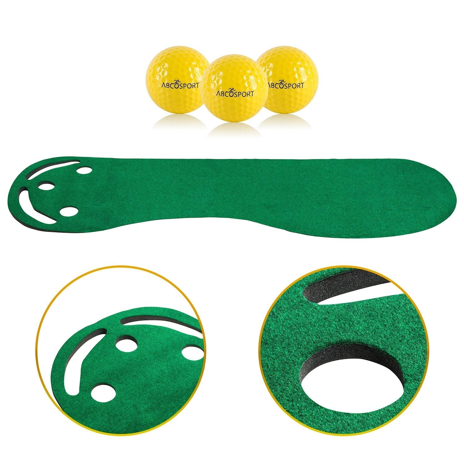 Abcosport Indoor Golf Putting Practice Mat – Auto Ball Return Function – Life-Like Portable Golf Court Real-Like Grass – Extra-Long Golf Mat – 3 Bonus Balls