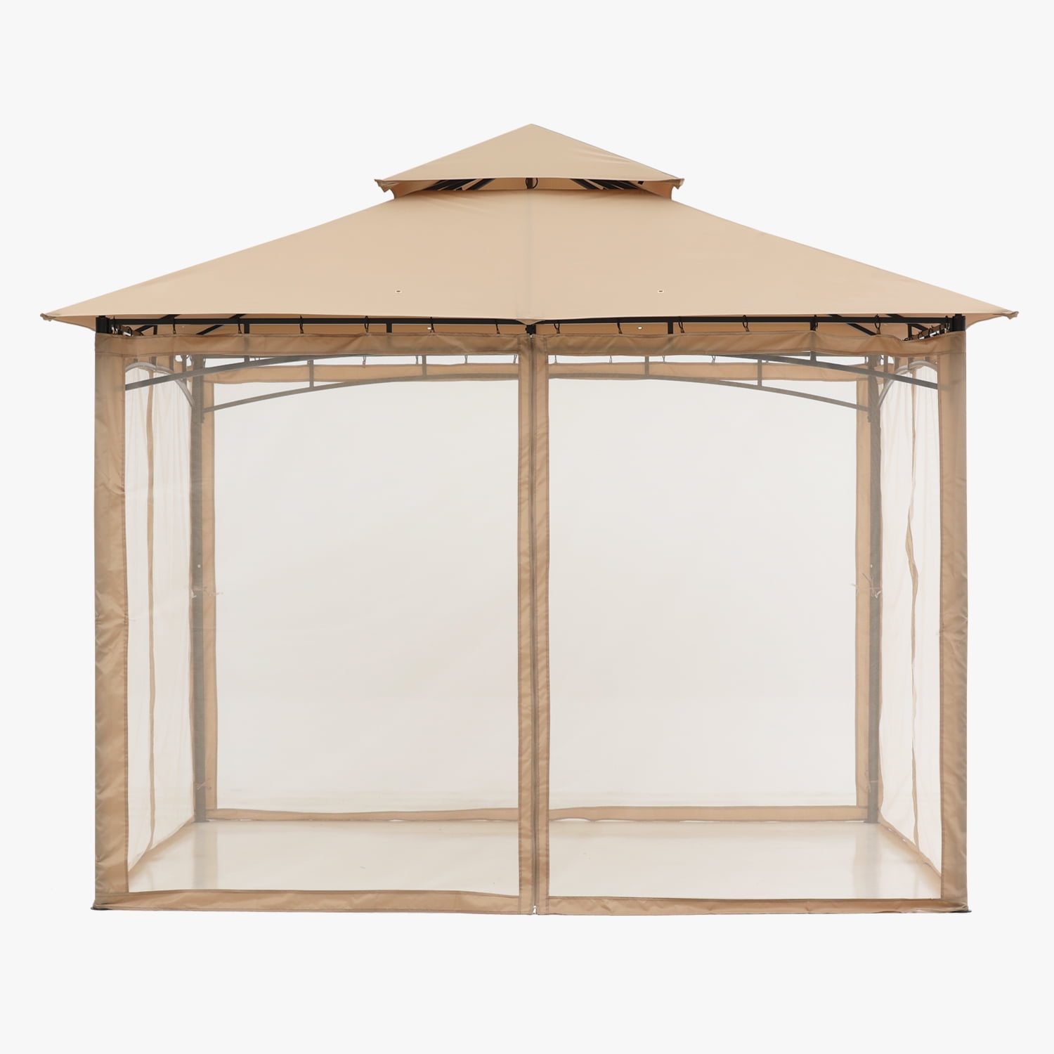 ABCCANOPY 9’x9′ Patio Gazebo With Mosquito Netting and Double Soft Roof Canopies for Shade and Rain,Khaki