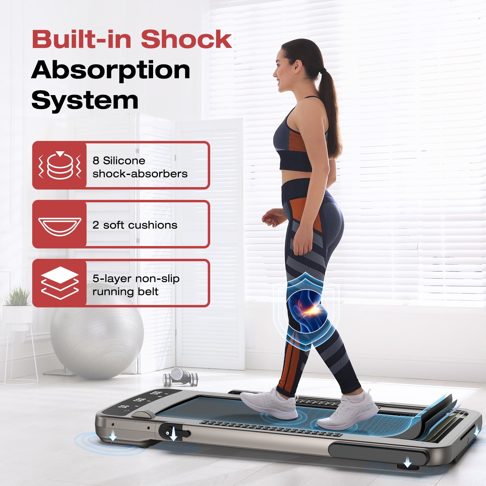 $429.99Original price was: $429.99.$142.76Current price is: $142.76.Transform Your Fitness Routine with HAPPRUN walking pad! Are you struggling with night runs? Worried about exercising outdoors in the winter? Or simply not a fan of going to the gym? Now, with the HAPPRUN treadmill, all your fitness concerns can be a thing of the past. HAPPRUN is designed to make your workouts enjoyable and hassle-free. We provide prompt and effective customer support, ensuring you have no worries about after-sales issues with larger products. Key Features: 🏃Dual Shock Absorbers: The extra-large central shock absorber significantly reduces friction between the walking pad treadmill and the ground, lowering noise and protecting your knees. 🏃Outstanding Weight Capacity: With a maximum weight capacity of 330 lbs (150 kg), this treadmills for home surpasses many others on the market. Its high weight limit accommodates a wider range of users, helping them achieve their fitness goals. 🏃Dual Control and LED Touch Screen: Equipped with a wrist-worn remote control, it’s convenient to adjust settings while exercising. The LED touch screen also allows for easy control and displays time, speed, distance, and calories burned, helping you track your progress effortlessly.This under desk treadmill retains your workout data for up to 10 minutes when paused, so you can hydrate or take calls without losing your progress. 🏃Three Workout Modes: Choose from walking, working, or running modes by adjusting the speed. If you experience shoulder, neck, or back discomfort while working, you can opt to walk while you work. This healthier work style is set to become a future trend. 🏃Ultra-Quiet Motor: The powerful 2.5HP motor operates at noise levels below 45 decibels, making it perfect for home or office use without disturbing others. The speed can be adjusted between 0.5 and 4 MPH to suit your needs. 🏃Family-Friendly Treadmill: With its high weight capacity, this compact treadmill meets the fitness needs of the entire family. Even your beloved pets can enjoy a workout under your supervision. Owning this walking machine provides fitness opportunities for everyone at home. Don’t let weather, time, or location limit your fitness goals. Order your HAPPRUN treadmill today and enjoy a healthier, more active lifestyle right from the comfort of your home!