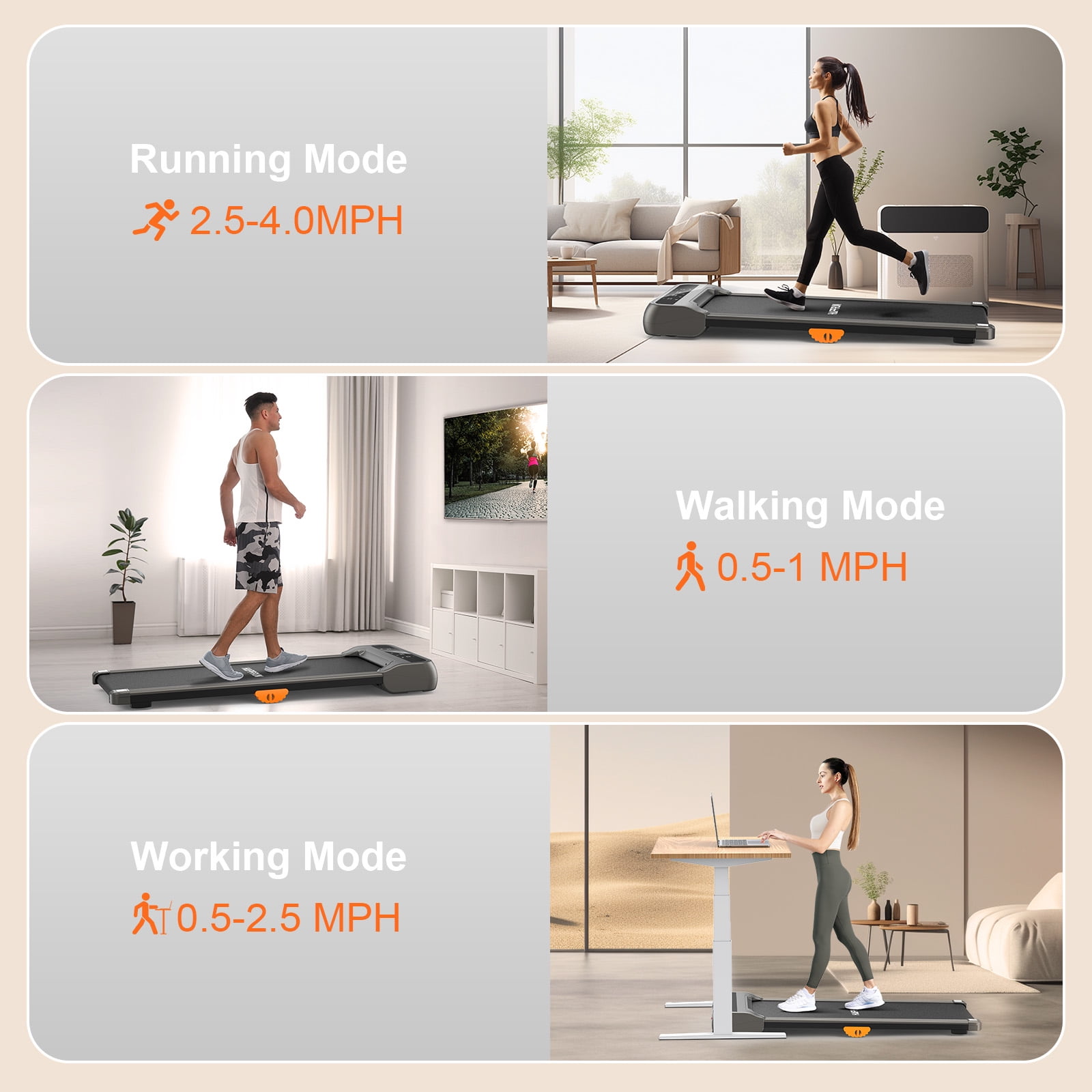 HAPPRUN Walking Pad, 2.5HP Under Desk Treadmill, Speed Range 0.5-4mph 330lbs Load Capacity Treadmill for Home Office with Remote Control