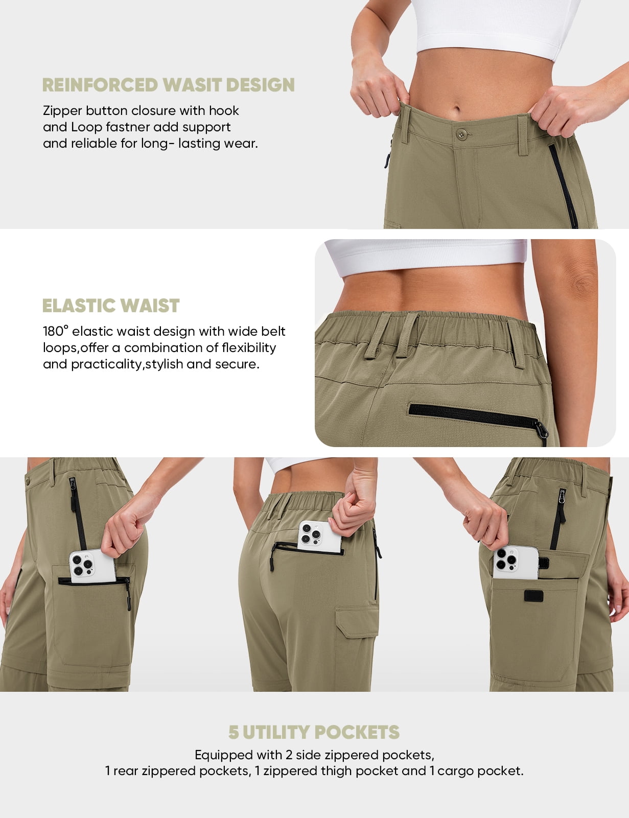 Hiauspor Convertible Pants for Women Zip off Cargo Hiking Capri Stretch Quick Dry Khaki S