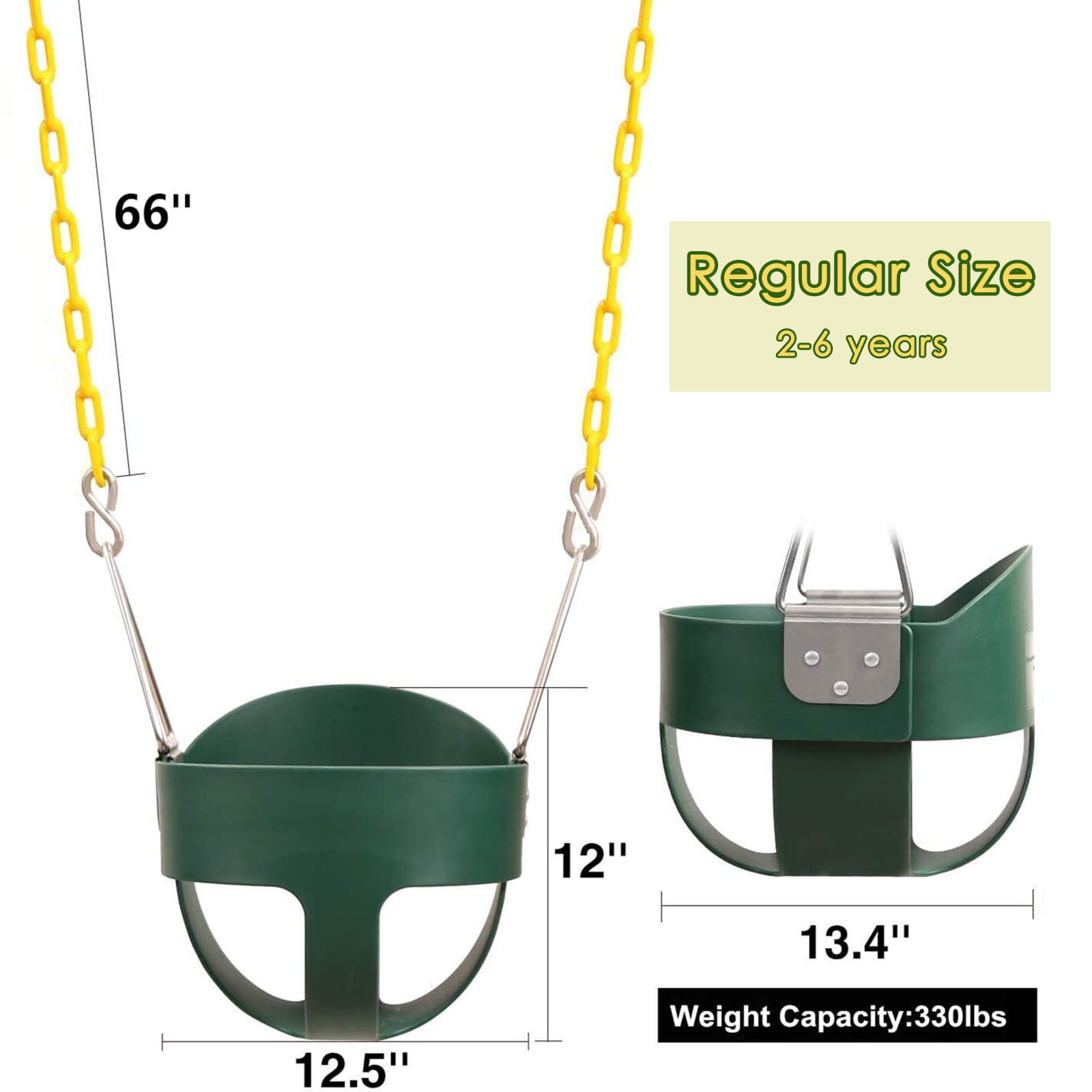 High Back Toddler Bucket Swing Seat with Coated Chains, Heavy Duty Kids Swing Seat Fully Assembled, Green