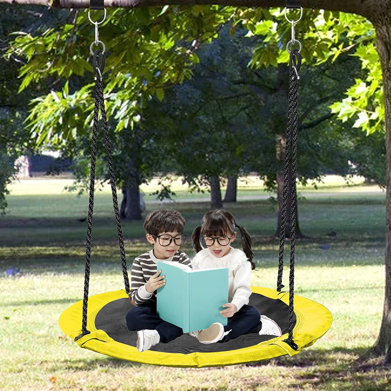 Hishine 43″ 700LBS Saucer Tree Swing for Kids, Waterproof Flying Saucer Swing with A Swivel, Hanging Straps, Adjustable Ropes, Round Mat Spinner Swing for indoor/playground swing set, Yellow