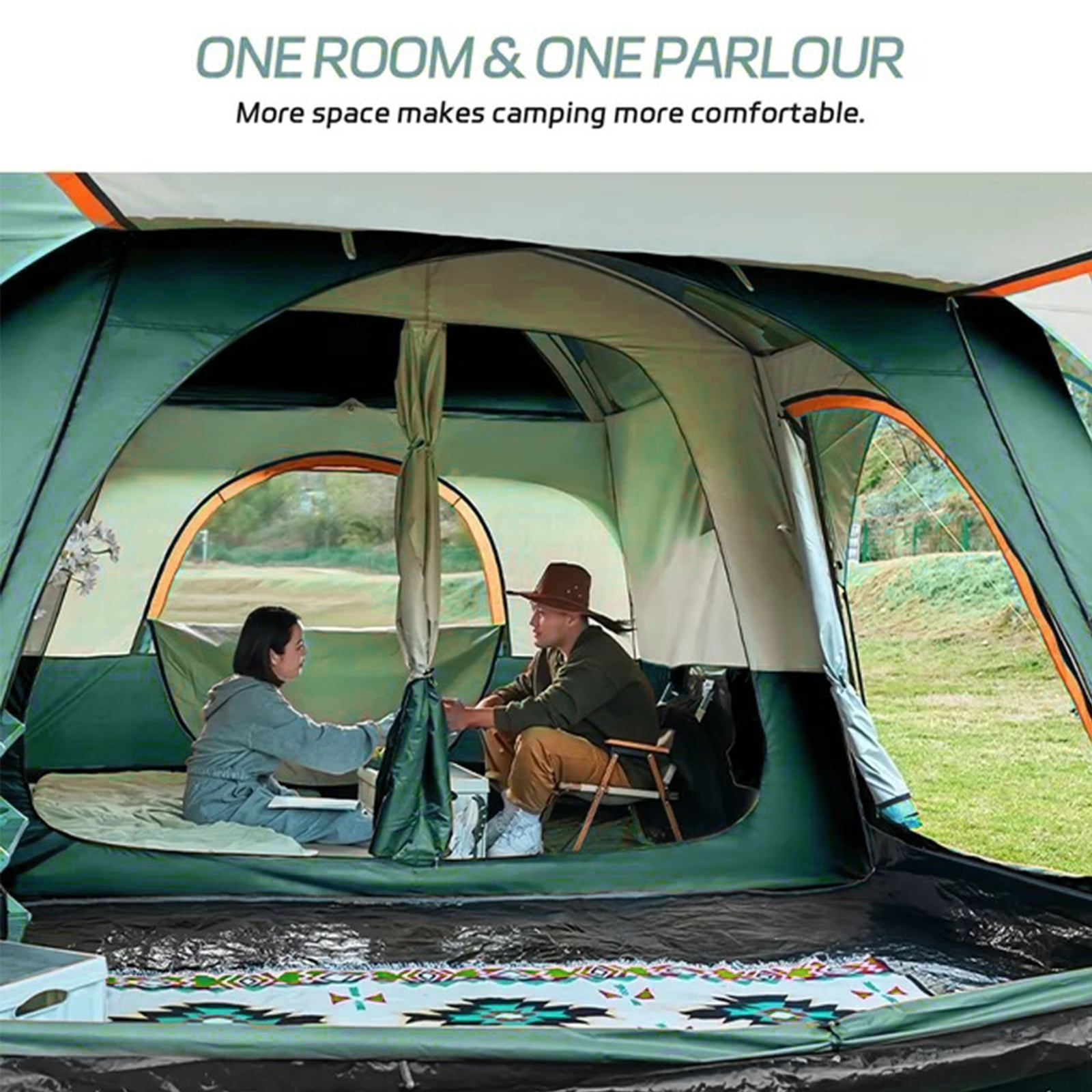 $137.56HONGGE 6-person tent is well received by consumers for its excellent quality. The use of high-quality raw materials and good workmanship make the product better waterproof and able to withstand greater wind and rain. 83*130 inches in size makes the tent able to sleep at least 6 people, suitable for families and friends to travel together. Expandable awning provides more space for activities and better breathable. Specifications: Metal: 210T encrypted polyester+High density mesh yarn+6000mm thickened wear-resistant PE+Painted steel pipe+Glass fiber rod Color: Brown Product size: 130 (L) x 83 (W) x 73 (H) inches Storage bag size: 26 (L) x 10 (W) x 10 (H) inches Weight: 20 lbs
