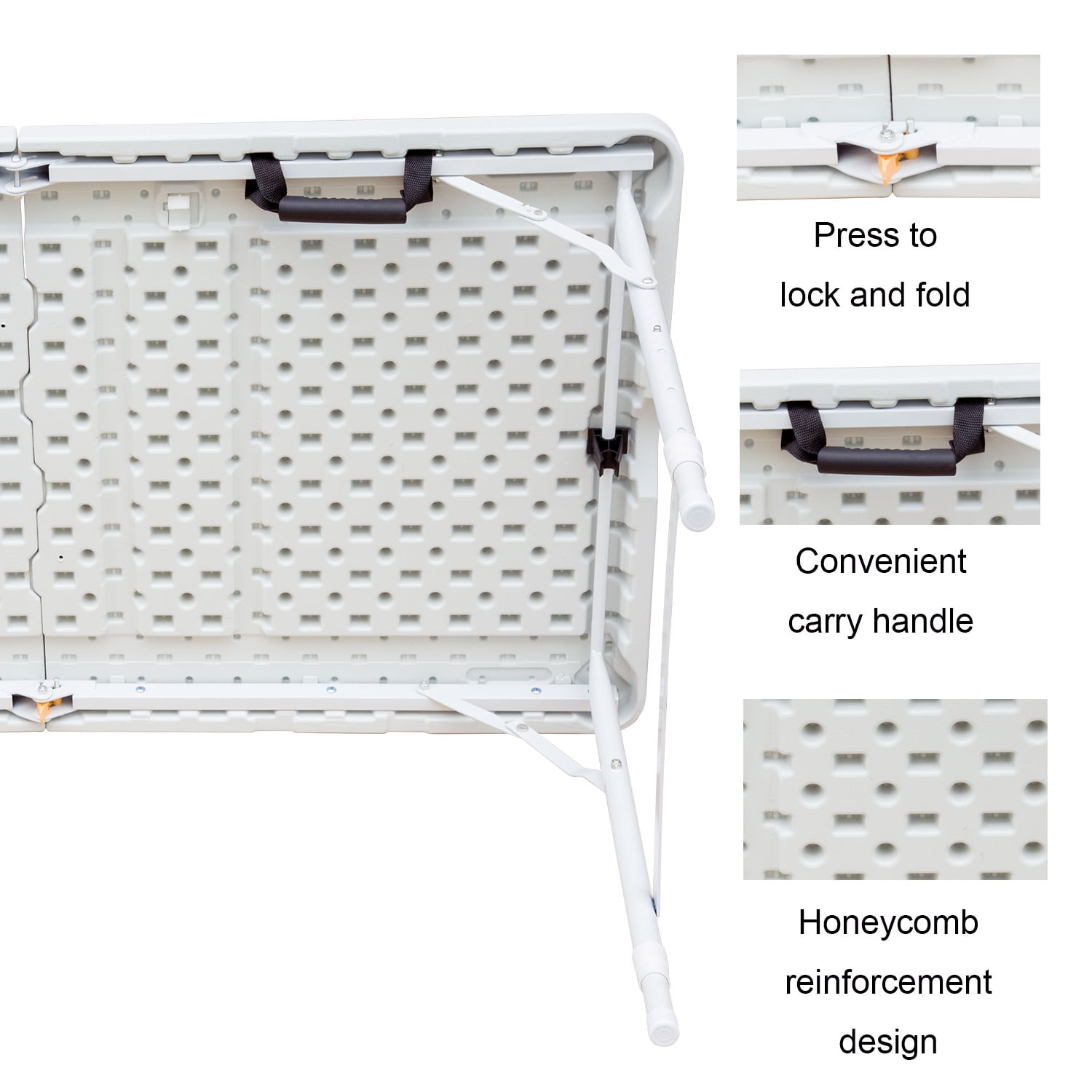 $65.35The table from HOOKUNG features a heavy-duty white top and the powder coated steel legs. Stain resistant and Easy-to-clean surface is slightly textured to avoid scratching, but smooth enough to write on. Powder-coated steel legs, frame joint locks, and non-slip rubber feet help to keep the table in place during every event.You don’t need to worry about its strength at all.Foldable design includes a side lock and handle, making it easy to take on the go or store away in a compact space when not in use. Versatile use makes it perfect as a dining or game table for outdoor cookouts or birthday parties, or as a serving or display table for indoor events.It only weighs 8.5kg, you can easily carry it anywhere you need it, and I believe it will become the most important foundation for your activities.