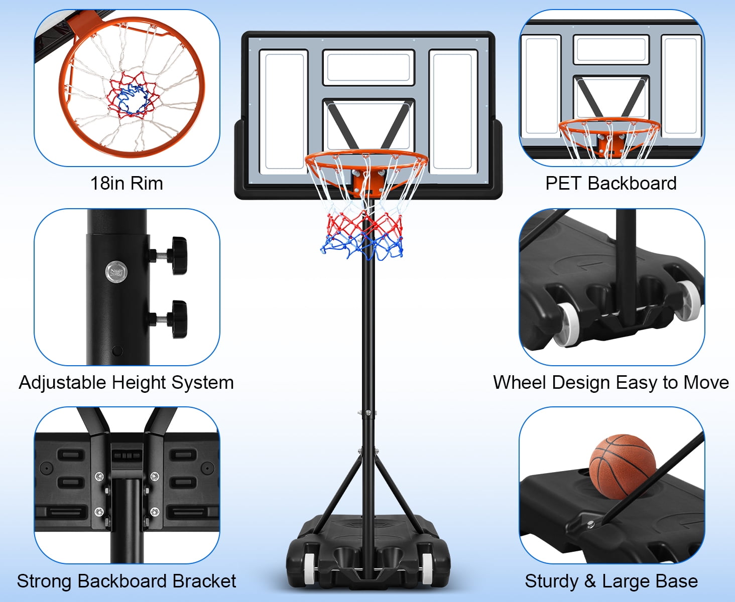 HONGGE Basketball Hoop, Portable Basketball Hoop System for Outdoor, Adjustable Height 5.7-10ft 44in Backboard Basketball Goal for Kids Teen and Adult