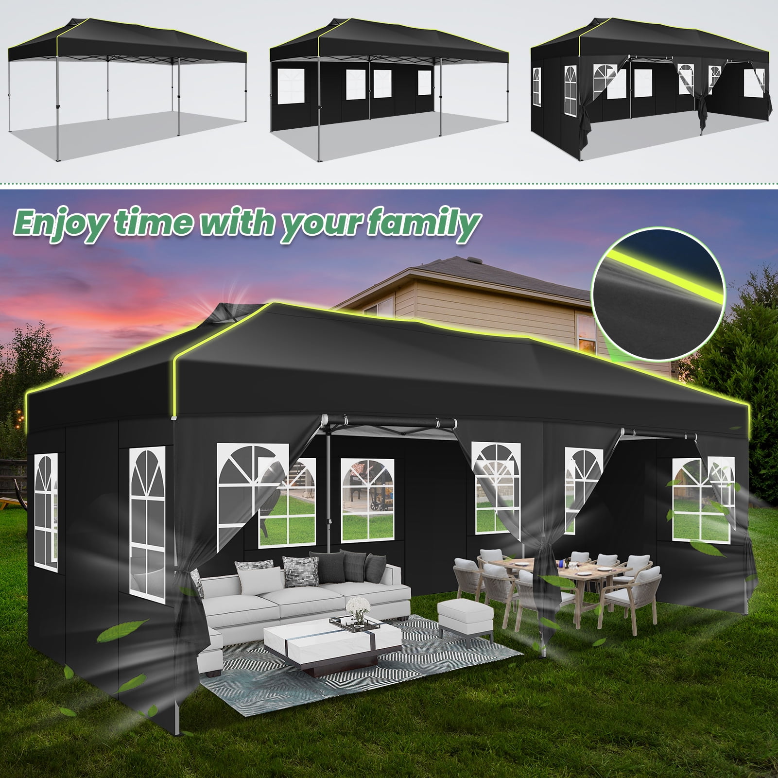 HOTEEL 10×20 Pop up Canopy Tent, Waterproof Commercial Tent with 6 Removable Sidewalls & Air Vent,One Push Setup Outdoor Sun Shelter Gazebo for Parties, Wedding, Black