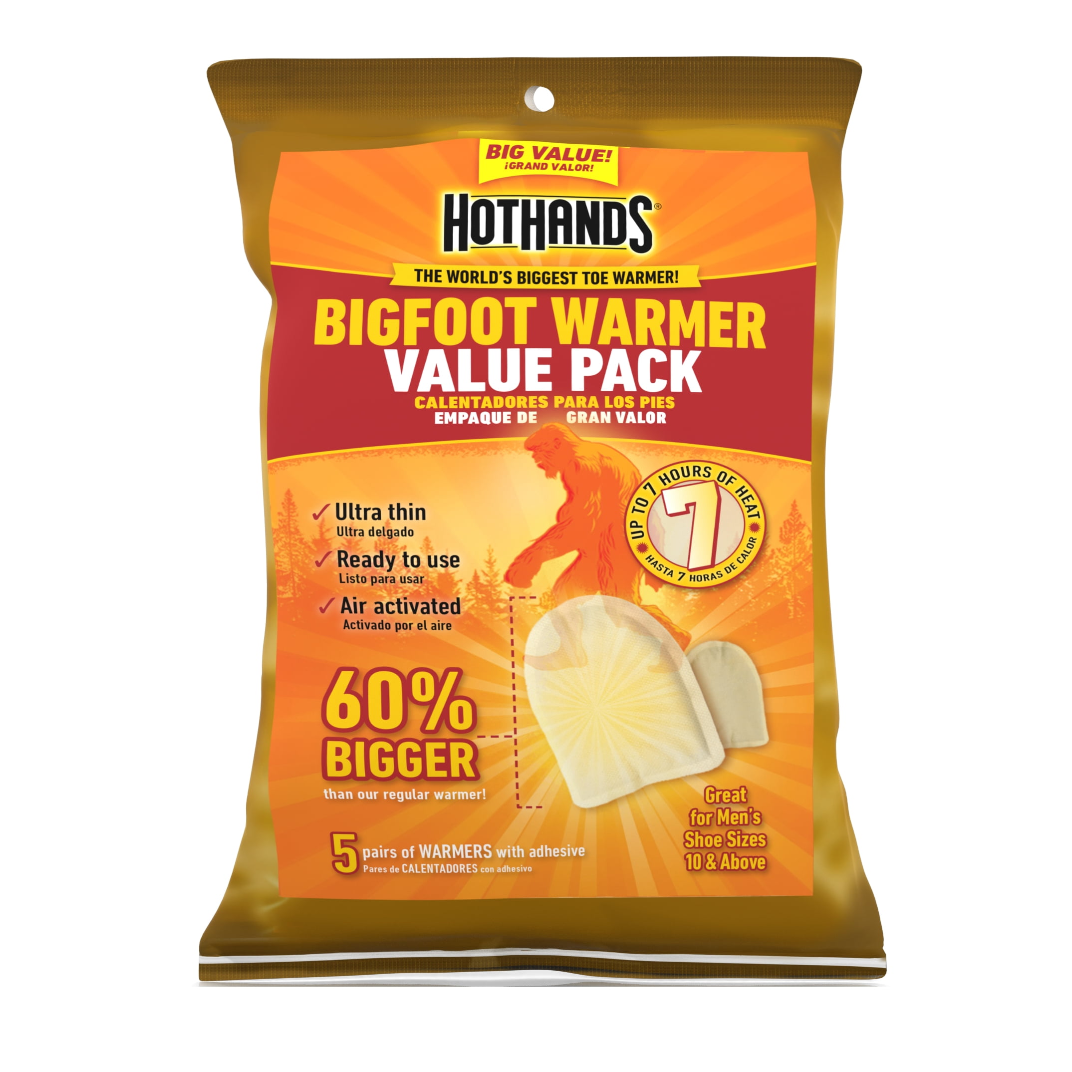 HotHands Bigfoot Large Toe Warmers with Adhesive, 60% Larger than standard toe warmers, 8 Value Packs of 5 Pairs = 40-Pair Pack