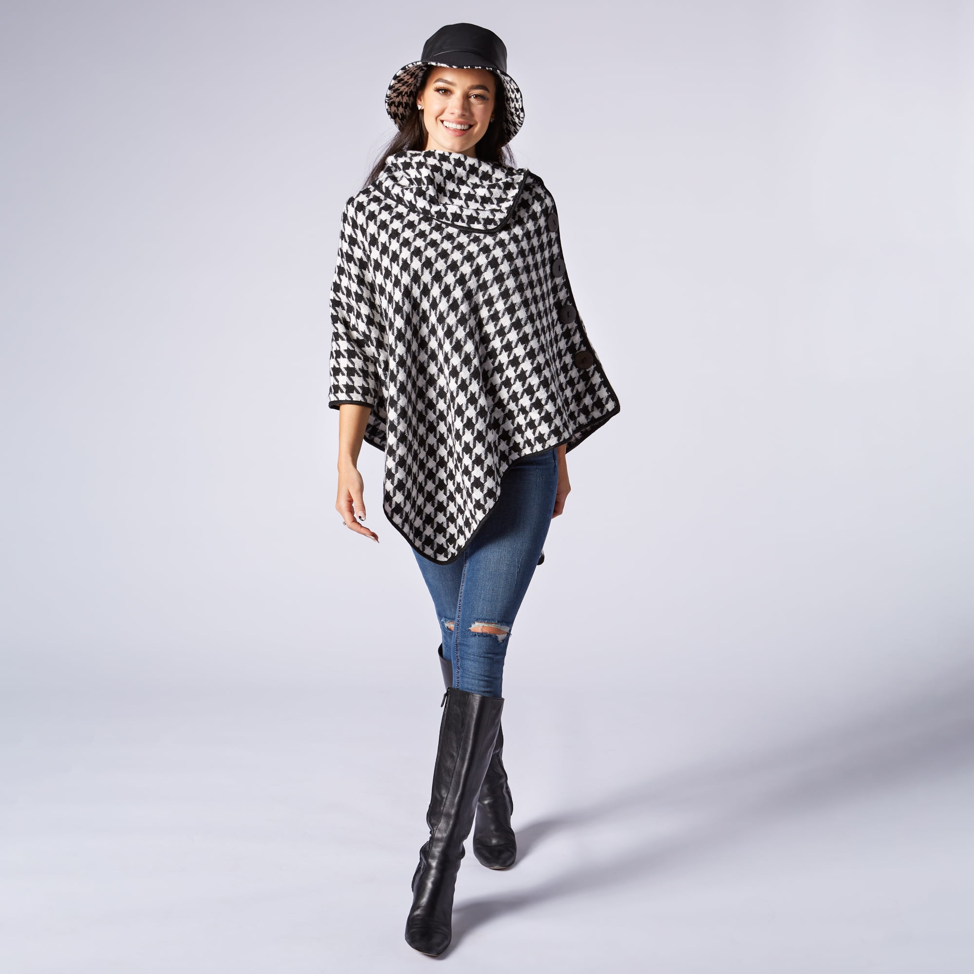 Houndstooth Poncho – Black and White