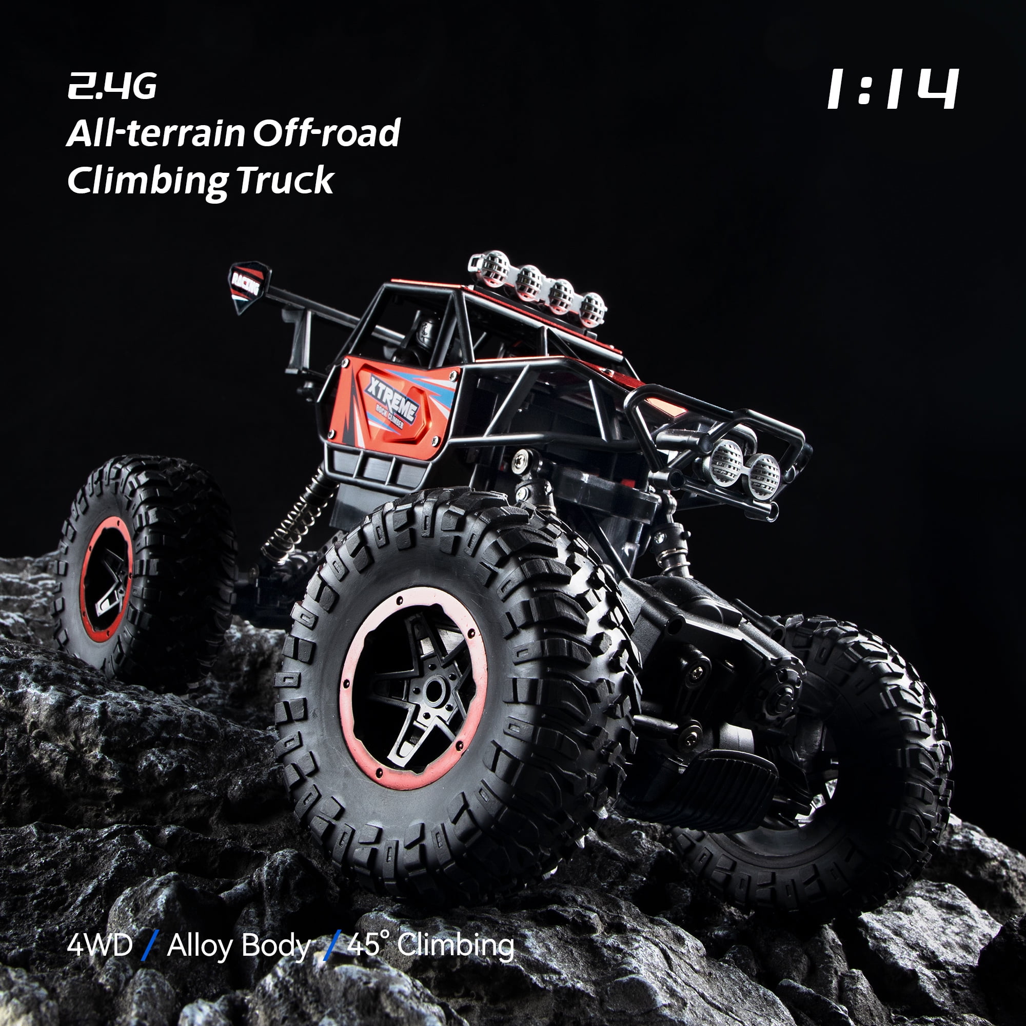 JJRC RC Cars Remote Control Car 1:14 Off Road Monster Truck, 4WD Dual Motors Buggy Vehicle, Red Car,Birthday Gifts
