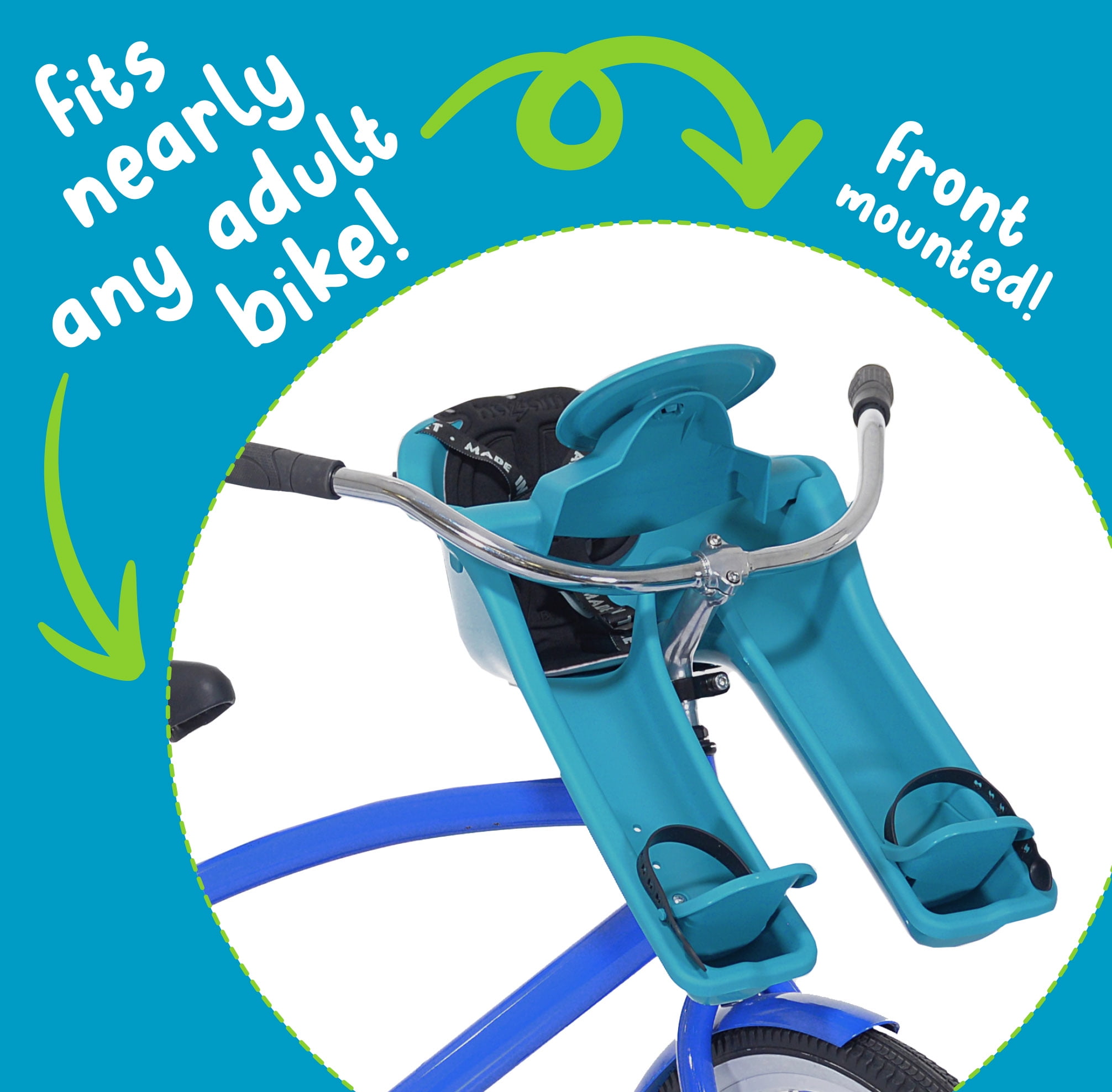 $59.76The iBert child bike seat provides a safe & fun experience for kids 1-3 years old. Able to be mounted to nearly any bicycle, this child seat offers your little passenger a way to see the ride the way you do, while also giving the rider a way to communicate with their little one. The seat shell is durable, lightweight and UV resistant, and the padding is removable and washable. The 3-point harness is safe and comfortable for your child. This seat is the perfect way to create long lasting memories!