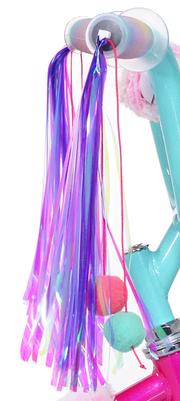 $76.54Kent’s 12″ furry-tastic cat girl’s bike will be so much fun for your child to ride around in. The bike features a furry, mounted bag, training wheels, pink spokes, blue sidewalls on a white tire, cat graphics, colorful handlebar streamers, and a furry attachment on the top tube. All the kids in the neighborhood will want one after seeing your child sporting theirs.