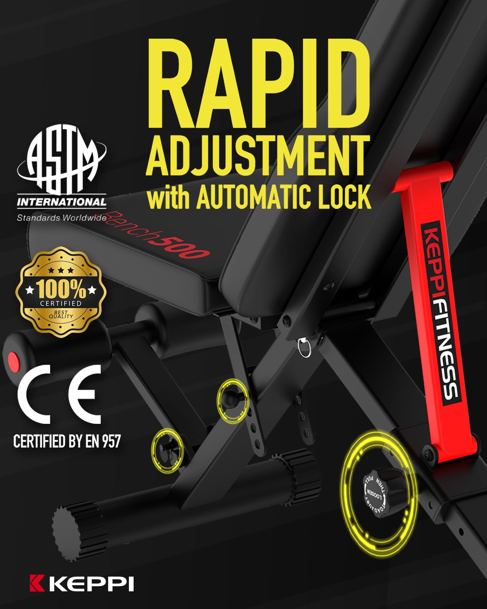 Keppi Adjustable Weight Bench for Full Body Strength Training, 900LB Foldable Workout Bench Press for Home Gym