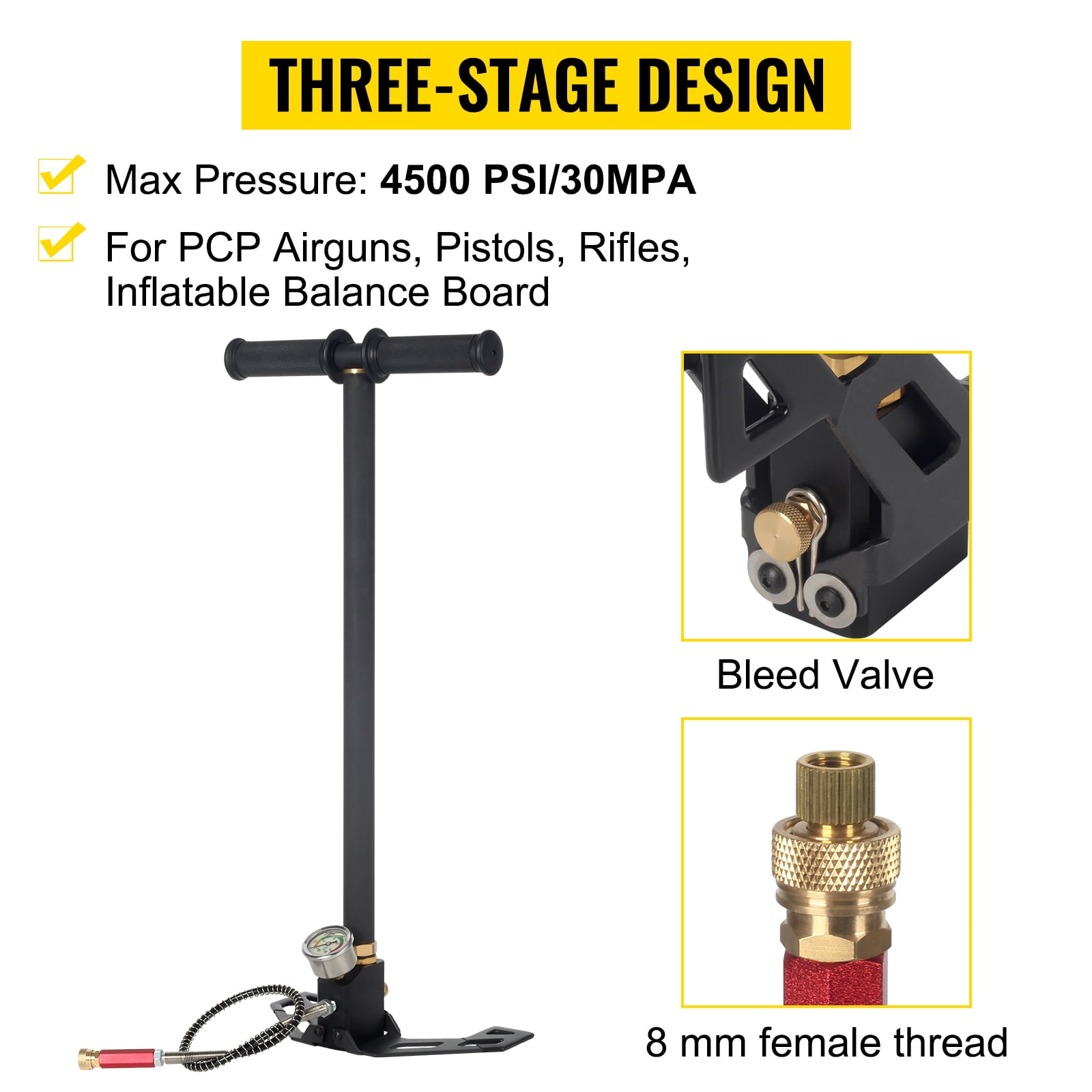 KFFKFF High Pressure Hand Pump 3 Stage, PCP Hand Pump 4500Psi, Airsoft Pcp Pump Stainless Steel Filled Stirrup Pump (Black)