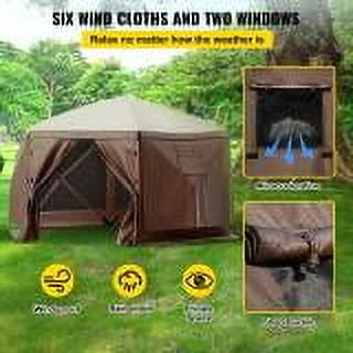 KFFKFF Camping Gazebo Tent, 10’x10′, 6 Sided Pop-up Canopy Screen Tent for 8 Person Camping, Waterproof Screen Shelter w/ Portable Storage Bag, Ground Stakes, Mesh Windows, Brown & Beige