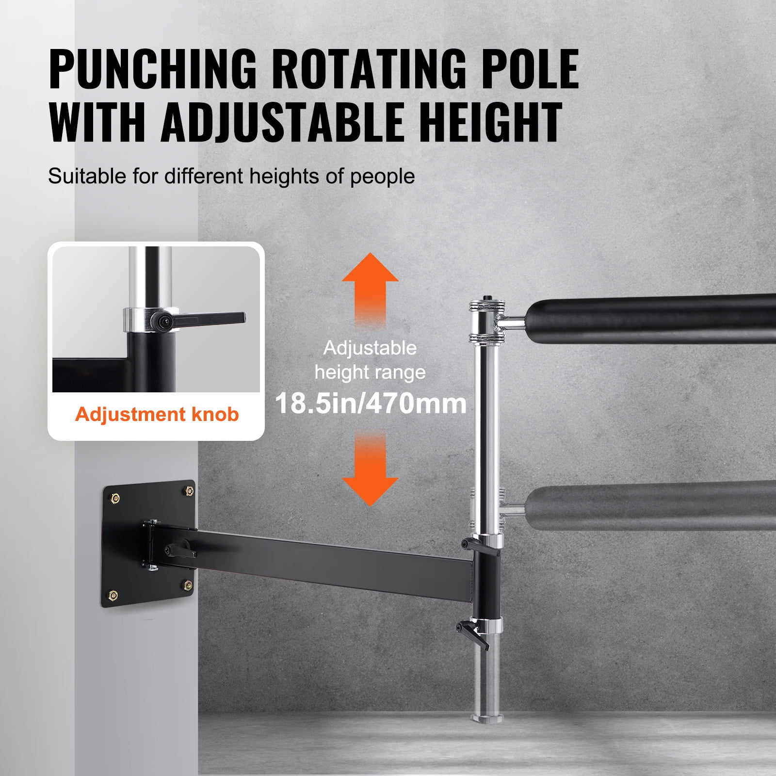 KFFKFF Wall Mount Boxing Spinning Punching Bar Adjustable Reflex Speed Trainer