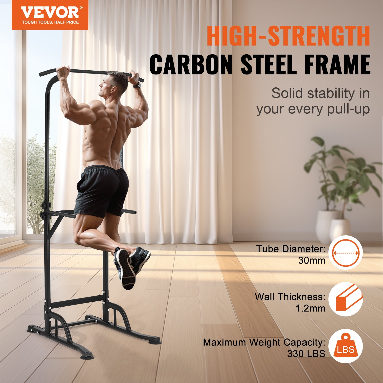 $81.69Product Description SKYSHALO Power Tower Dip Station Take your workouts to new heights with SKYSHALO power tower dip station. Its sturdy carbon steel frame and 10-level height adjustments make it the perfect addition to fitness routine. Whether to build muscle, increase flexibility, or improve health, it adapts to your workout style for comprehensive fitness goals. Adjustable Height With 10 height settings ranging from 67-inch to 82.7-inch, our pull up bar for home gym caters to users of different ages and heights. Whether you’re an adult, child, fitness enthusiast, or senior, our versatile power tower meets your different exercise needs and promotes overall fitness. Stable Structure Engineered with an H-shaped base, our pull up dip station ensures balanced support, expanding the force area for enhanced stability. 4 suction foot covers grip the ground firmly, adapting seamlessly to various surfaces, from marble and hardwood to concrete and carpets. Comprehensive Training Enjoy a comprehensive fitness experience with SKYSHALO power tower workout dip stands, catering to diverse fitness needs. Ideal for men sculpting a muscular physique, women achieving effortless slimming, seniors maintaining vitality, and teenagers fostering growth and development. Aesthetic & Practical Classic color and practical design make the strength training fitness workout station not only a robust fitness tool but also a part of home decor. Its compact features occupy minimal space, while the easy installation ensures ease for even female users, enhancing your home lifestyle. High-Strength Carbon Steel Our pull-up rack is made from high-strength carbon steel, thickened and reinforced for durability and deformation resistance. The surface coating is easy to clean and scratch-resistant, offering protection against bending, cracking, rusting, paint peeling. Multi-Functional & Space-Saving The SKYSHALO pull-up bar is compact yet powerful, easily fitting in home gyms, garages, or small apartments, making it the ideal choice for those with limited space. Specifications Item Model Number: ssshkytxs-e Color: Black Maximum Load Capacity: 330 lbs / 150 Kg Net Weight: 35.71 lbs / 16.2 kg Product Dimensions: 30.12 x 36.22 x 82.68 in / 765 x 920 x 2100 mm Package Content 1 x Pack of Screws 4 x Suction Cup Foot Covers 1 x Instruction Manual