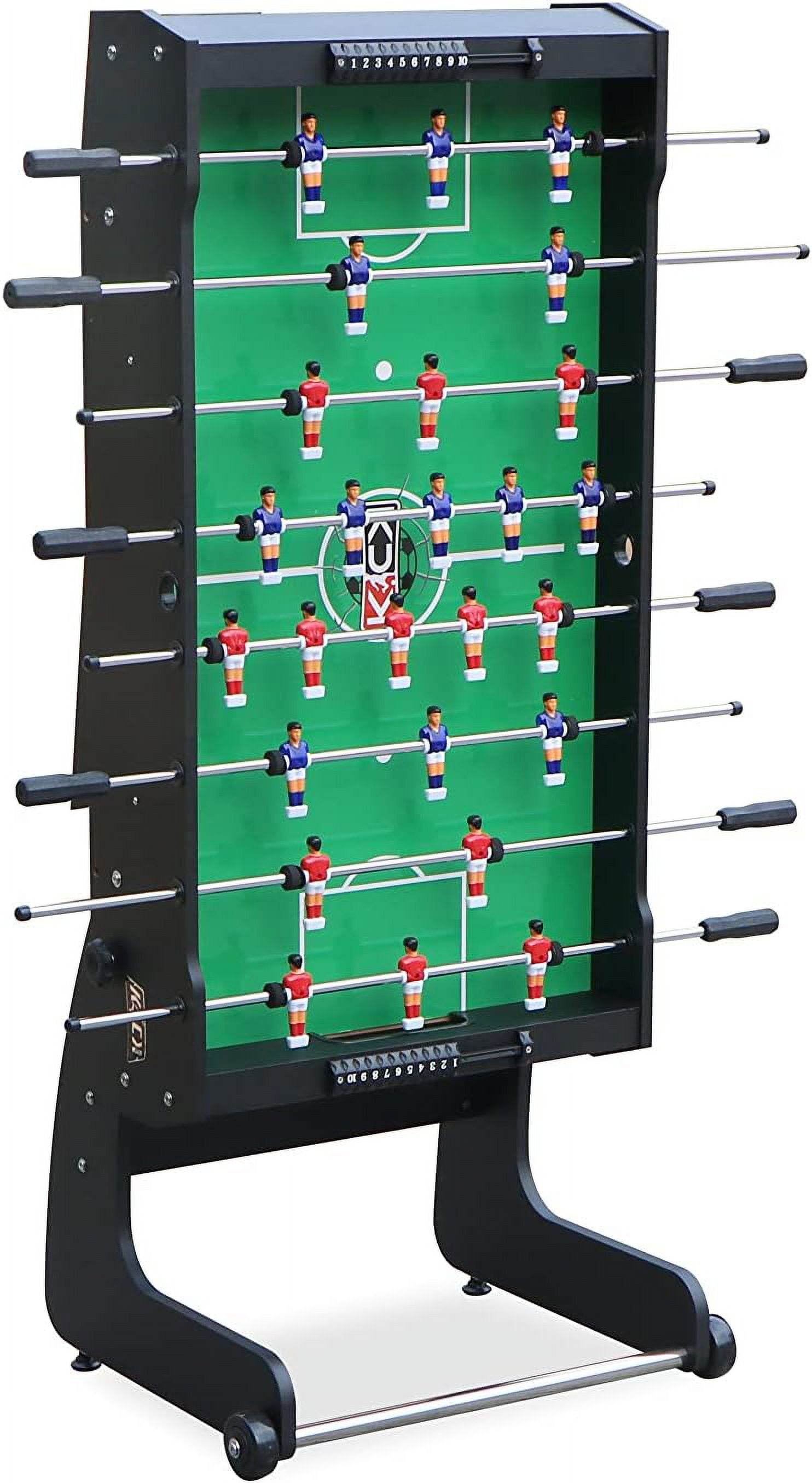 $86.89The KICK Convoy is the most convenient tabletop Foosball table in the industry! The table save space in your room, and lets you enjoy, a game of Billiards, Air-Hockey, Table Tennis and a Foosball match with your buddy, on one table! . Take this portable yet sturdy table wherever you go for hours of Foosball or ice hockey entertainment. Join the KICK family by purchasing the latest addition to the our Foosball table line up, the KICK Convoy Foosball Table!