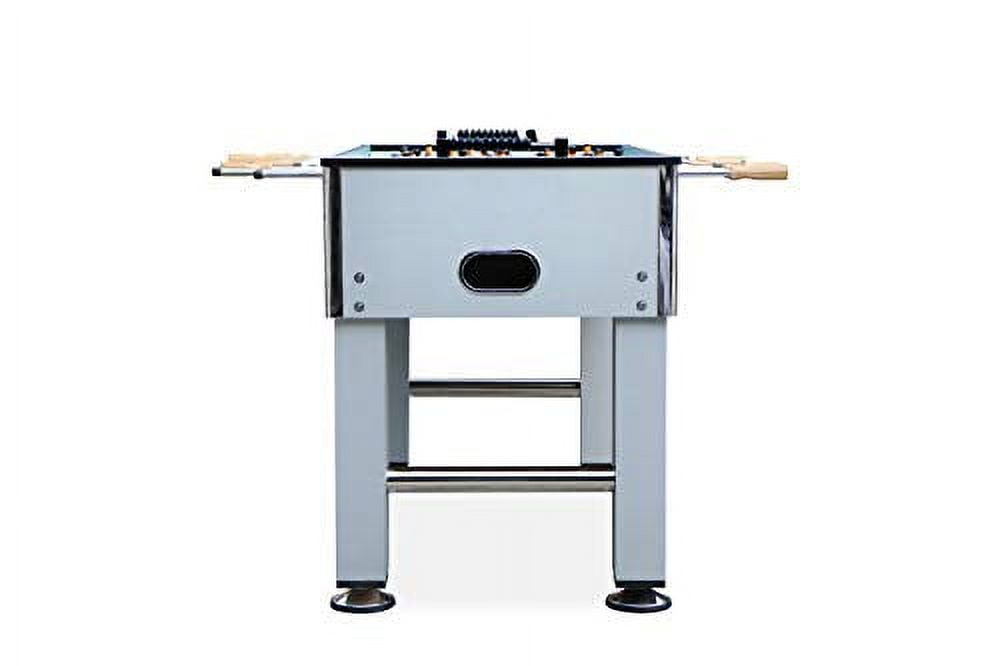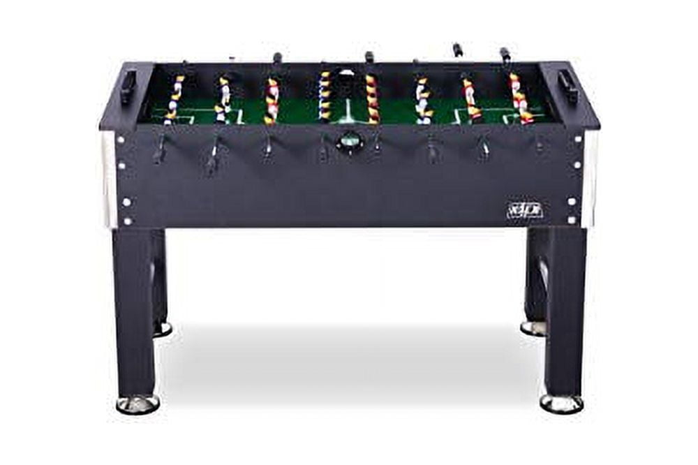 $369.67About the KICK Voyager 55″ Foosball Table: The KICK Voyager 55″ Foosball Table is the perfect choice for foosball enthusiasts seeking style and precision. With a sleek black and silver design, this table ensures stability through integrated leg bars and adjustable levelers, guaranteeing a perfectly straight playing surface on any floor. The 1/2″ thick playing field provides an intense gaming experience, coupled with semi-solid stainless-steel rods for precise ball control. Easy-Grip Black ABS ergonomic handles offer a secure hold, even for those with sweaty palms. The table accommodates both 1-man and 3-man goalie configurations, allowing players to customize their gameplay. With a focus on aesthetics, stability, and performance, the KICK Voyager delivers an exceptional foosball experience for Adults, Kids, Professionals, Beginners, and everyone using this table.