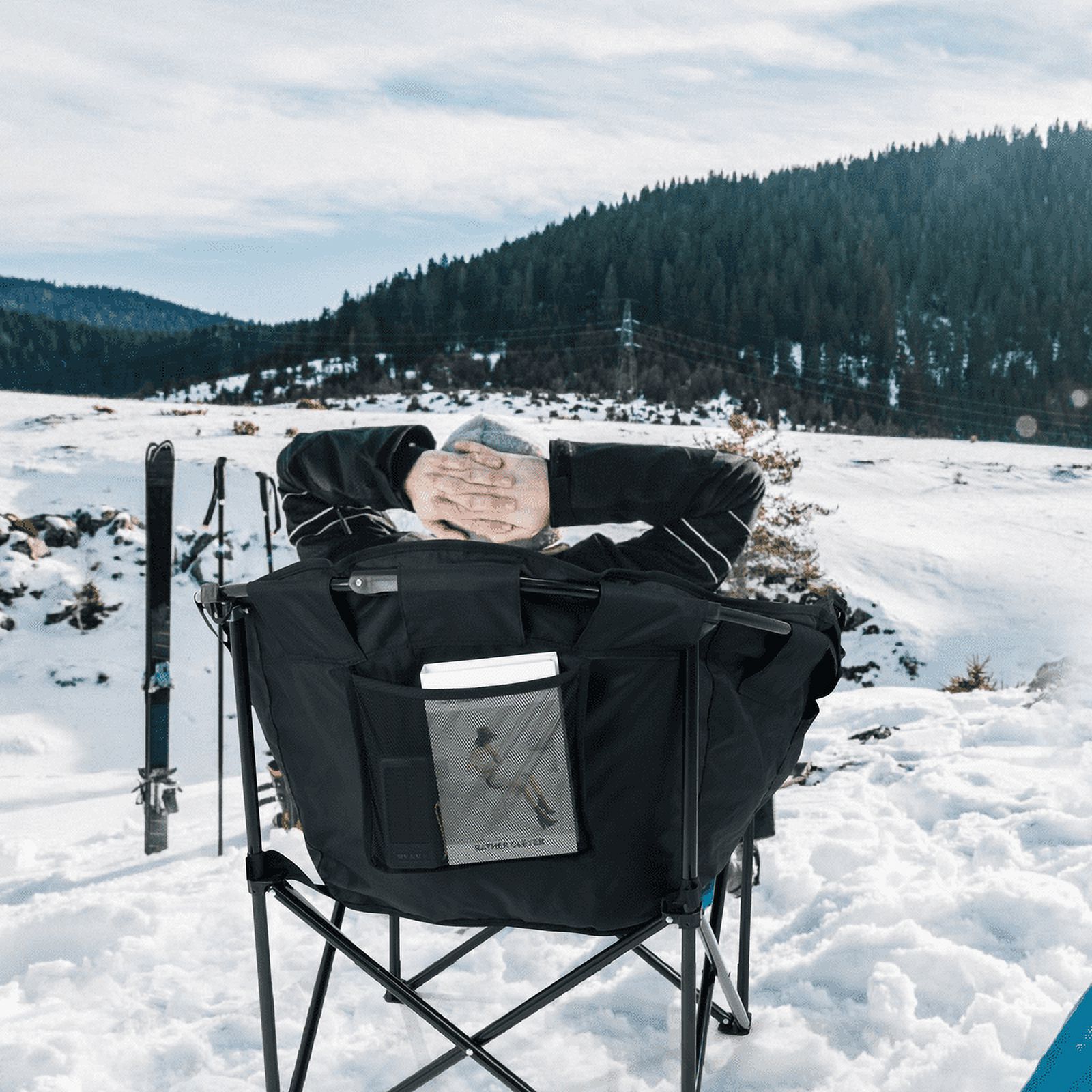 Kinnls Oversized Heated Camping Chair -3Heat Levels Outdoor Portable Chairs-CozySaucer Seat, Supports 500 lbs – Folding RoundMoon Chair Seat for Sports, Camping, Patio,Lawn – NO Battery