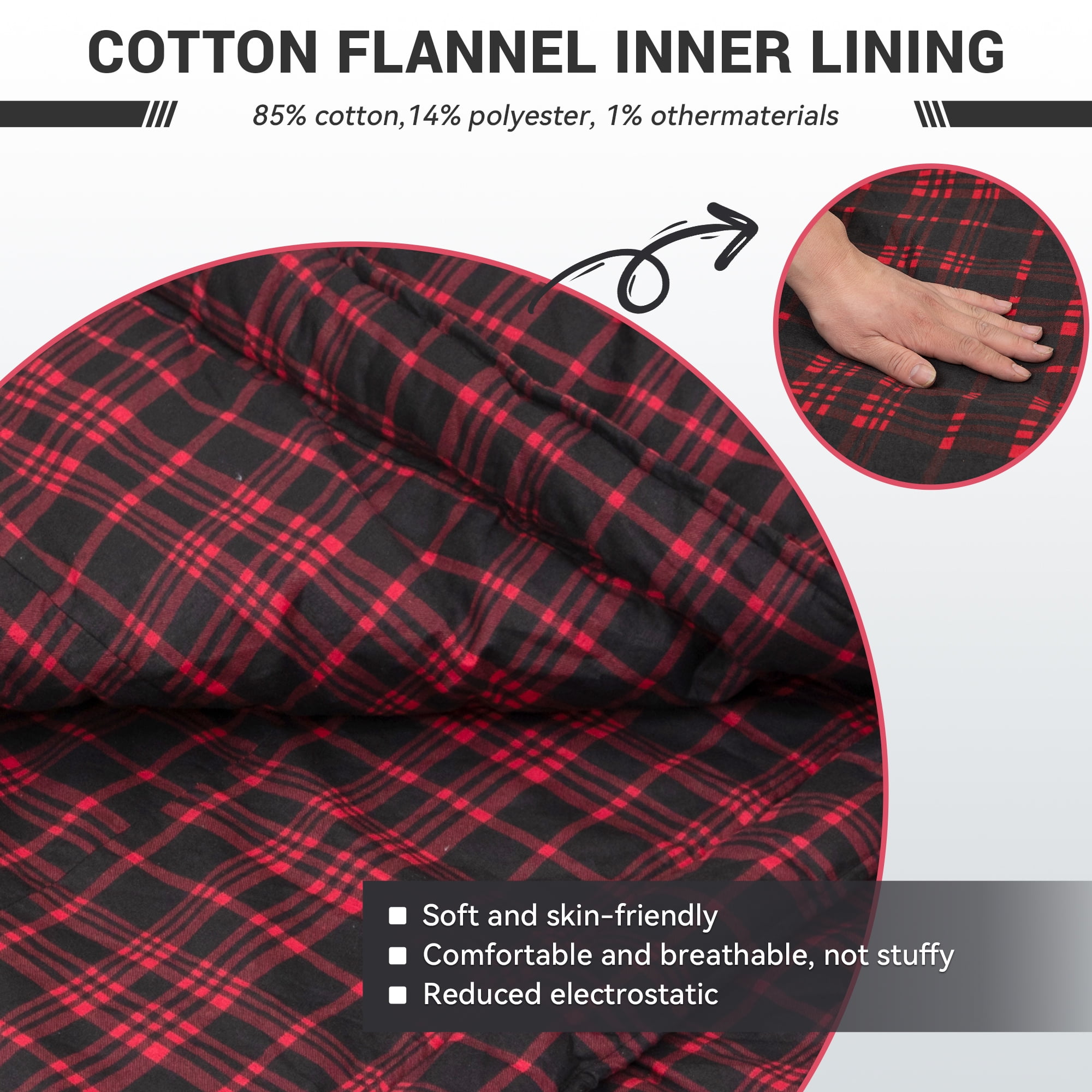 $60.19Original price was: $60.19.$54.17Current price is: $54.17.The ideal temp of this cotton sleeping bag is 17.6-54°F, meaning a sleeping bag for camping can accompany you through the spring, autumn,and winter 3 seasons. Our flannel lined sleeping bag allows you to enjoy a comfortable and spacious sleep like a bed at home. KingCamp waterproof sleeping bag filling 250g/㎡ hollow fiber and 100% cotton flannel lining offers excellent warmth and comfort throughout the night. Our tall sleeping bag for adults adopts a new diagonal quilting design, which can better fix the cotton, lock the temperature of every inch of the hiking sleeping bag to enhance the warmth of the bottom. It is very suitable for outdoor activities in autumn,winter,spring.