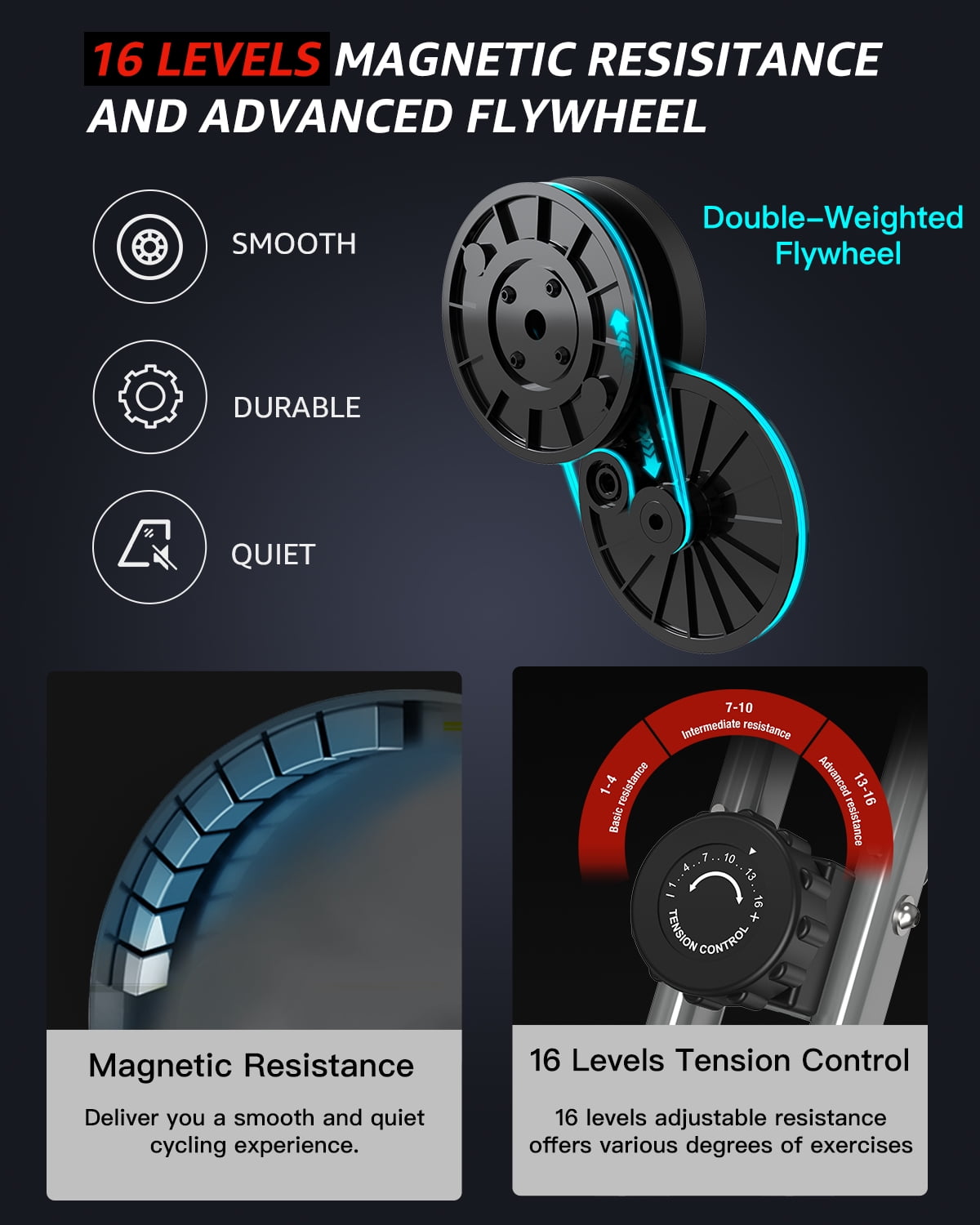KURONO Stationary Exercise Bike for Home Workout, Folding Indoor Cycling Bike for Seniors | 330LB Capacity, 16-Level Magnetic Resistance, Seat Backrest Adjustments
