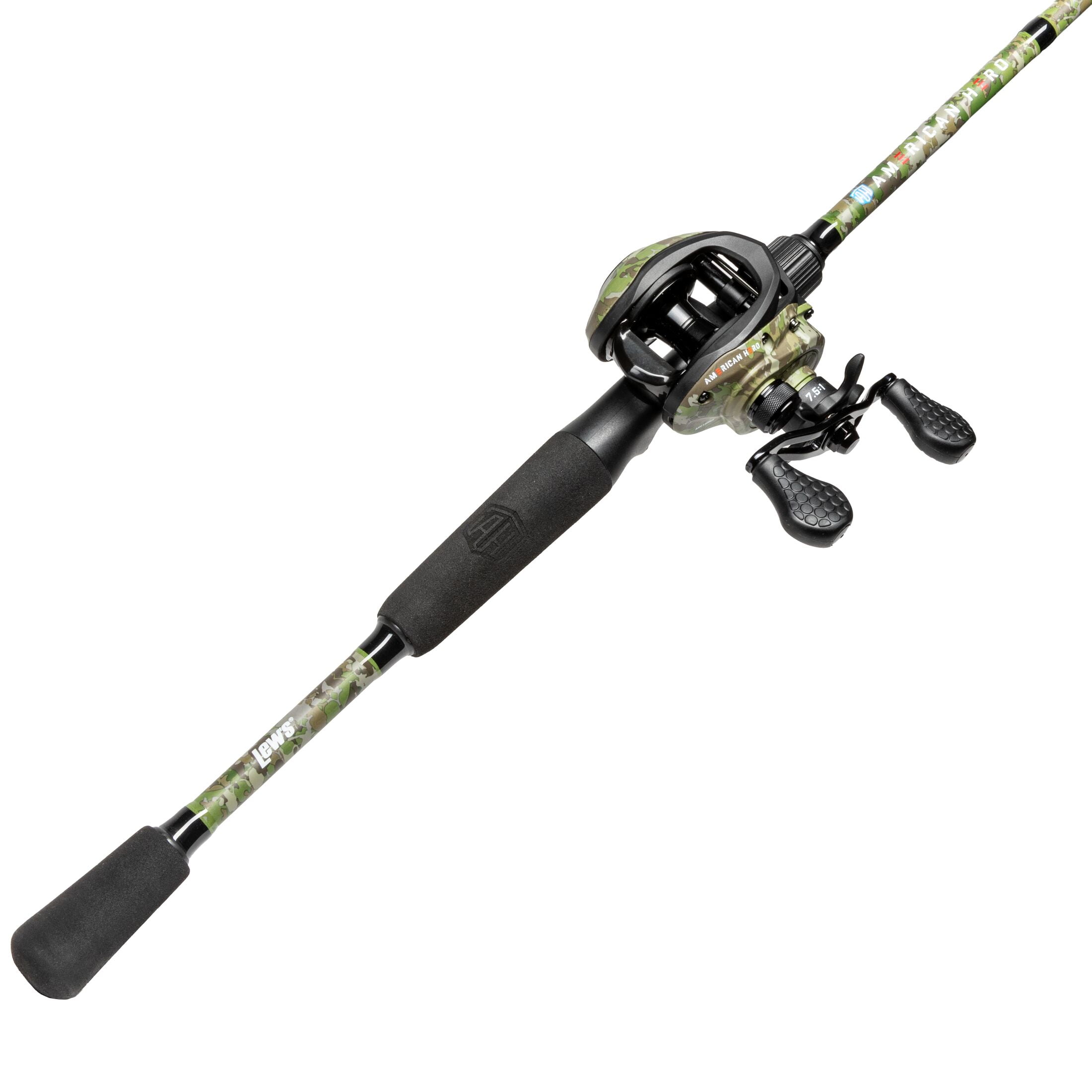 $128.96Original price was: $128.96.$103.17Current price is: $103.17.Donning a new look with Lew’s exclusive Hero Cam camo pattern, the American Hero Camo baitcast combo features a lower profile reel with a one-piece graphite frame and sideplate design, delivering ergonomic comfort and tournament-level performance every time. Built to last, the reel strikes the ideal balance between durability and seamless operation with high strength solid brass Speed Gears®, a premium 6-bearing system containing stainless steel double shielded ball bearings, and an externally adjustable Magnetic Control System (MCS). Experience the power of the 1-piece, IM7 graphite blank on the American Hero Camo baitcast combo, providing the structural strength and lightweight flexibility that anglers demand and a split-grip EVA rod handle with embossed American Hero logo.