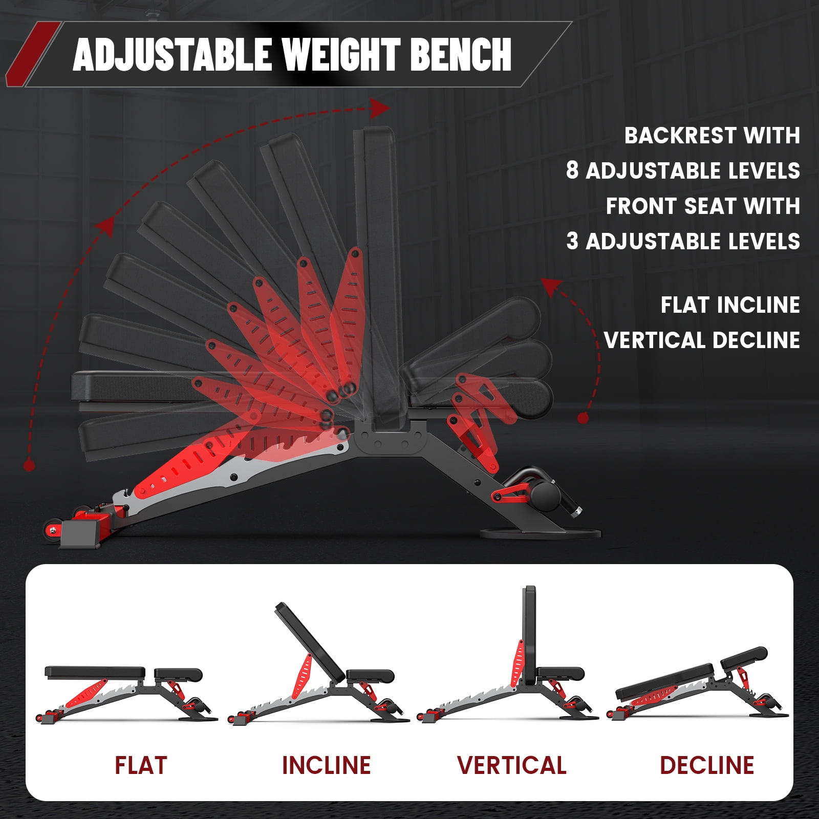 LNOW 1200LB Heavy-Duty Adjustable Weight Bench – Strength Training, Dual Rails & C-Lock Safety for Home Gym (Flat/Incline/Decline)