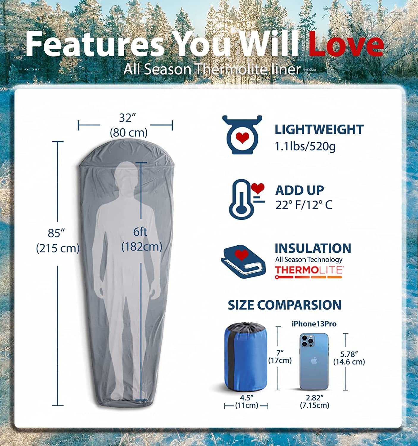 $49.86Polyester Stay Warm & Comfy: We designed this sleeping bag liner sheet to provide you with a simple way to stay warm and comfortable even in the outdoors. When used with a sleeping bag, this travel sleeping bag liner can add up to 22°F/ 12°C warmth to your sleeping bag for a good night’s sleep Soft & Elastic Fabric: Each hiking sleeping bag liner is made using only soft, smooth and elastic fabric that locks in the warmth so you can sleep comfortably in your sleeping bag. It’s ideal for use both indoors and outdoors as well as helping keep dirt and bugs away Compact & Lightweight: Thanks to the lightweight and foldable design, you can easily roll this sleeping bag liner and take it with you anywhere you want. Our lightweight sleeping bag liners come with a carry sack allowing you to pack the mummy sleeping sack down to only 7″x4.5″ (17×11 cm) For All Your Adventures: Whether you’re going camping, hiking, traveling, backpacking or just spending some time in the woods, you can count on our liners for sleeping bags to add more comfort to all your outdoor adventures and can also be used at hotels or at home to stay comfy and warm For All Your Travels: Whether you’re spending some time in the woods or going on a road trip, our double sleeping bag for camping will ensure your comfort. It’s ideal for all your trips, travels and adventures including hiking, backpacking, long trips, and more