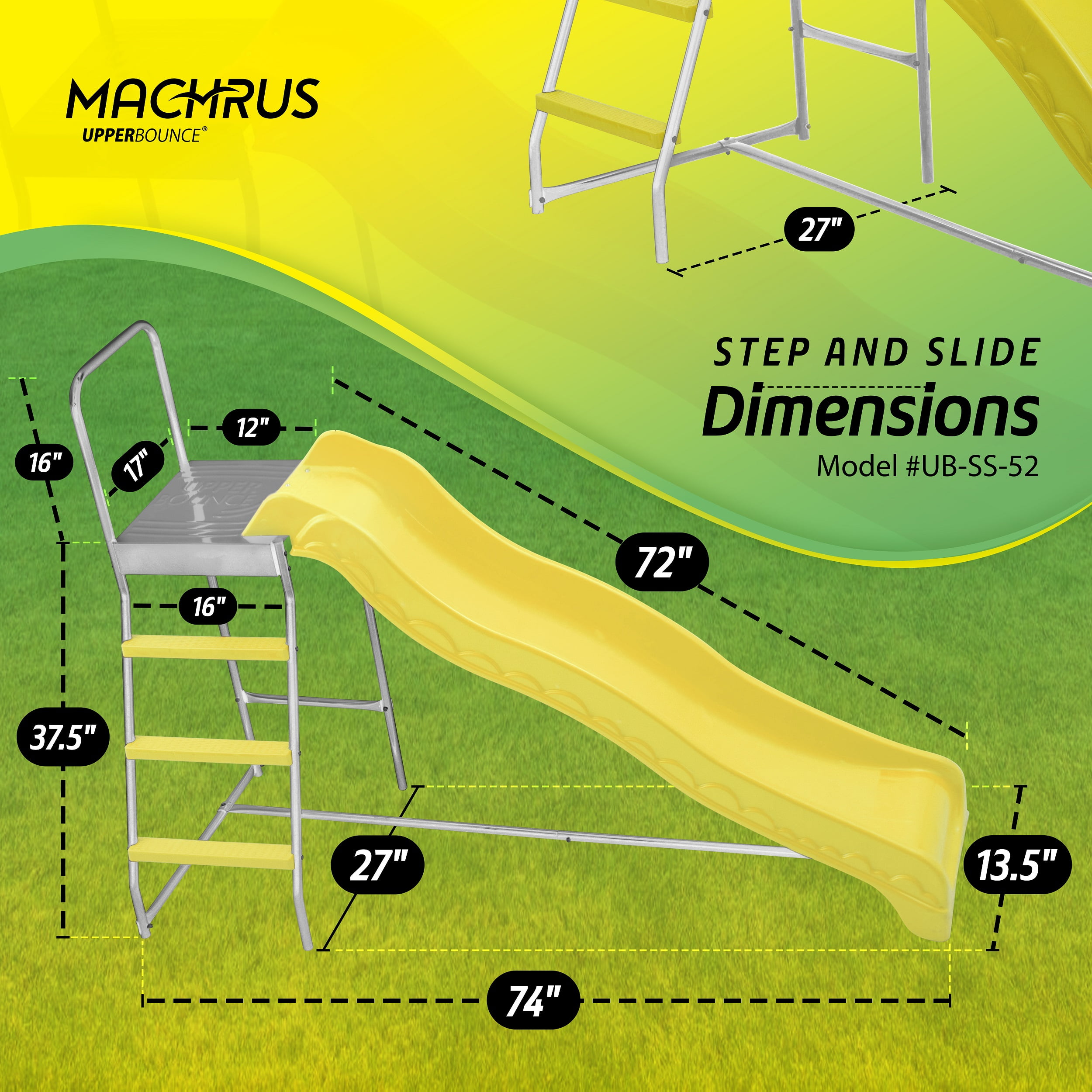 Machrus Upper Bounce Trampoline Step N Slide | Fun Indoor & Outdoor Ladder and Wave Slide Set – Perfect for Round or Rectangle Trampolines with or Without Net – Yellow