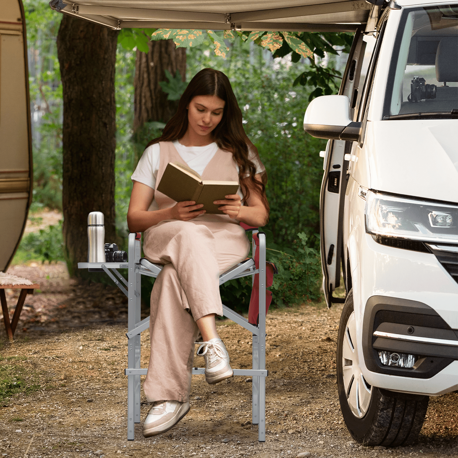 Magshion Folding Camping Director Chair with Side Table & Storage Pocket, for Adult Beach, Fishing Trip Picnic Lawn Concert Outdoor, Red